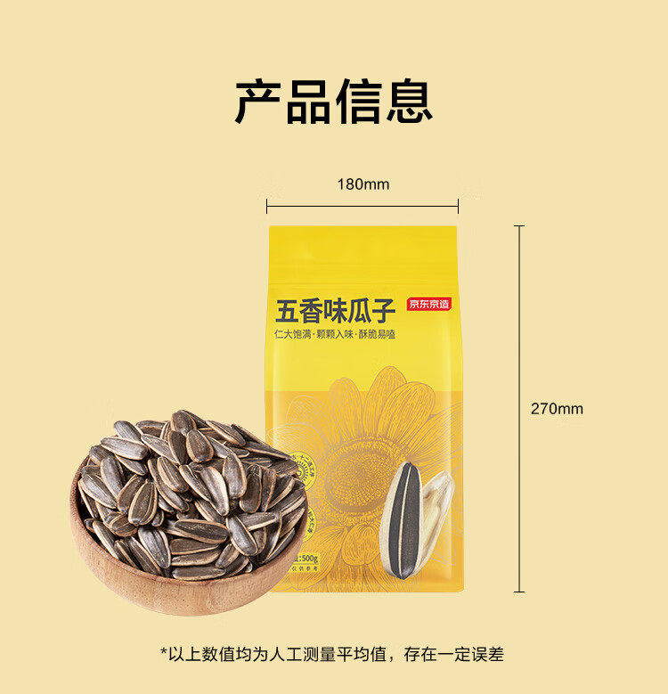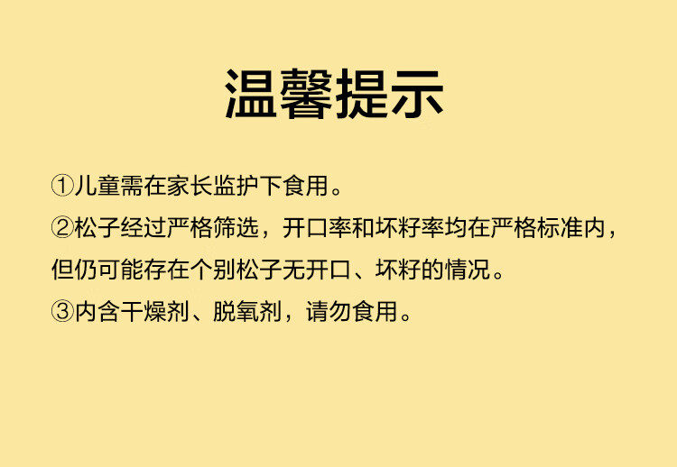 | Packaging specifications | Spiced melon seeds 500g,Northeastern hand-peeled red pine nuts 500g,Black melon seeds 500g |