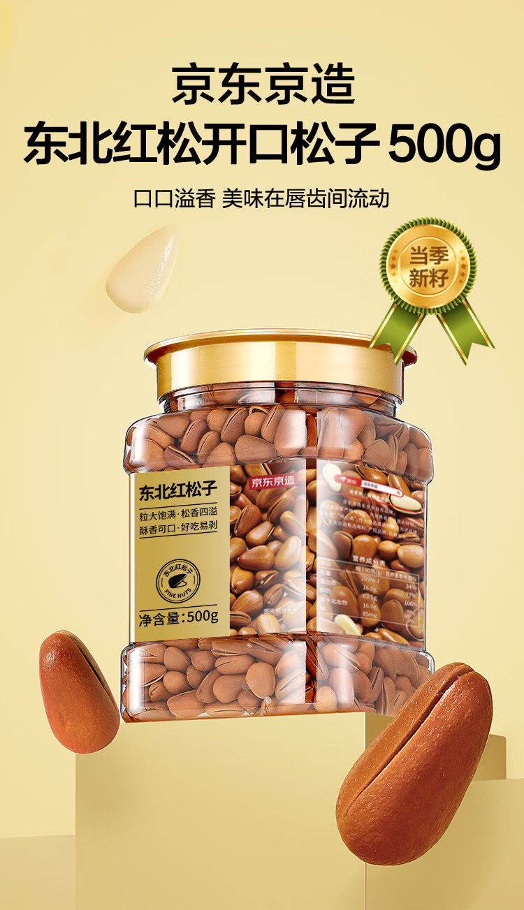 Jingdong Jingzao Northeast Hand Peeled Red Pine Nuts 500g Daily Nut Dried Fruit Canned Nut Pine Nuts