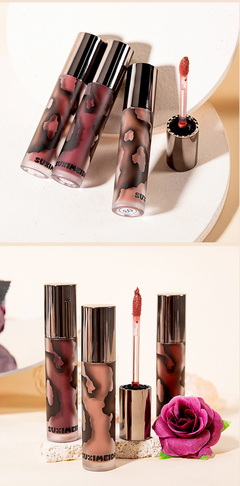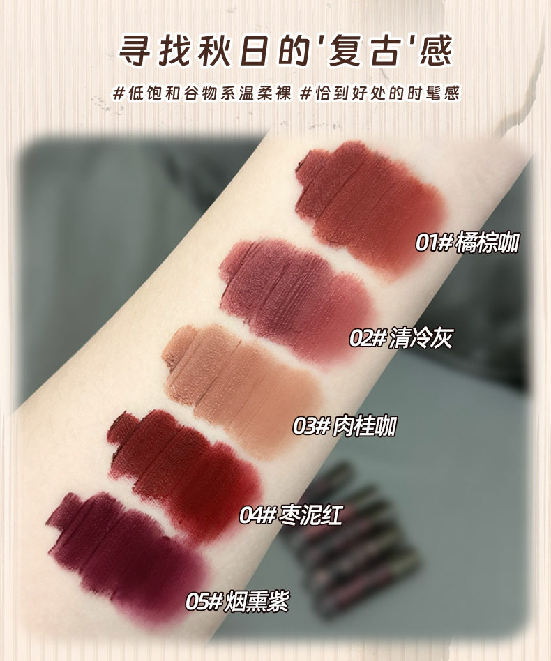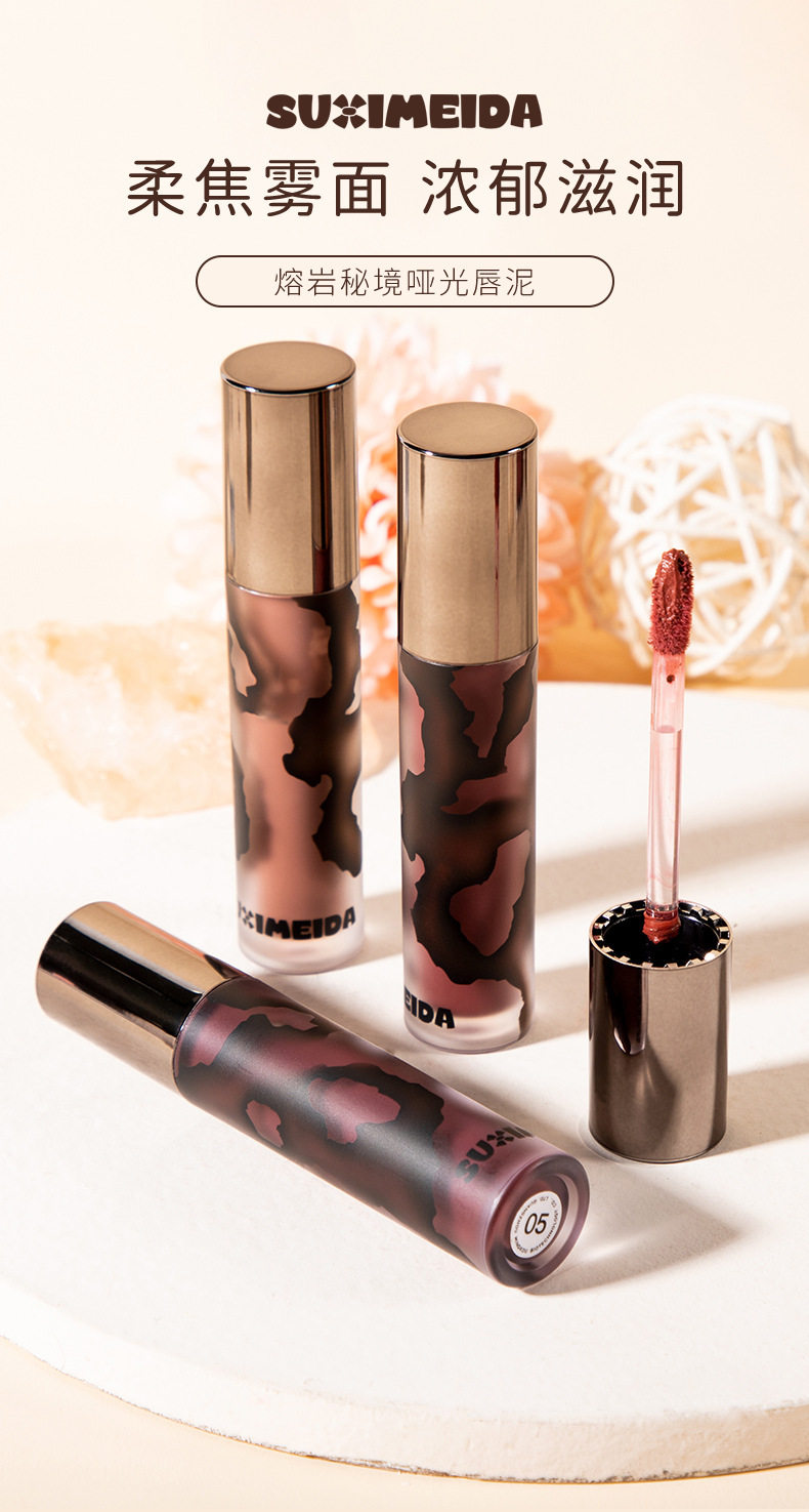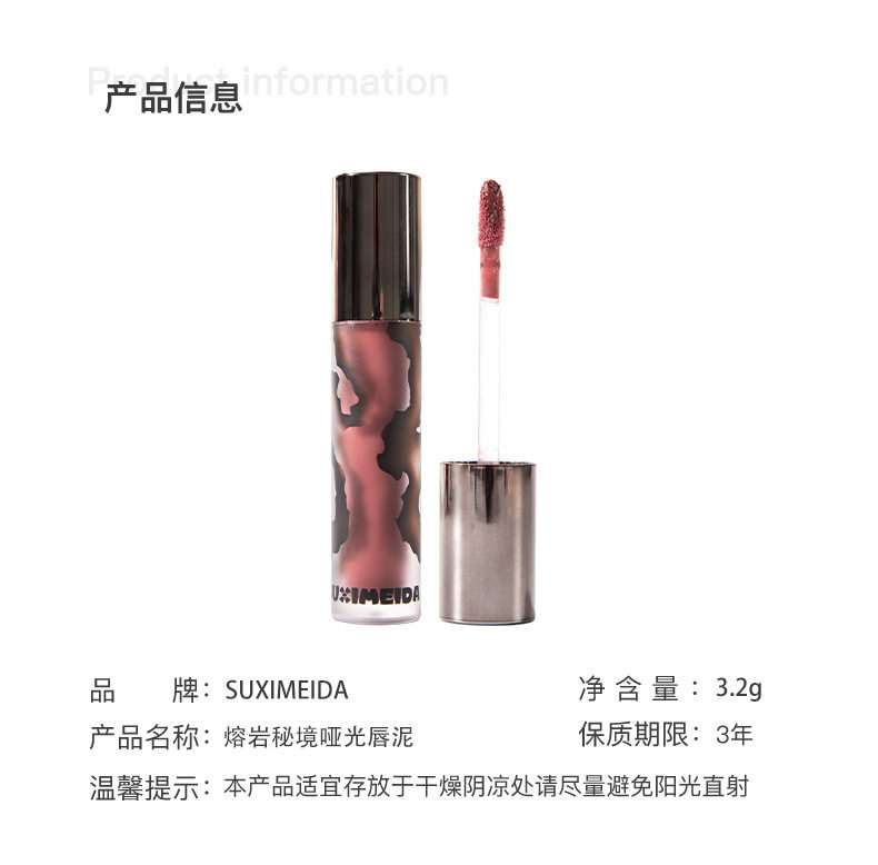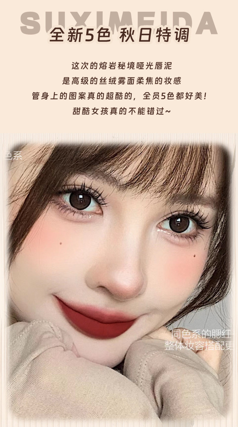 Susimei Lava Secret Realm Matte Lip Cream Mud Maillard Brown Autumn and Winter Smoked Lip Glaze White Lipstick Student Party