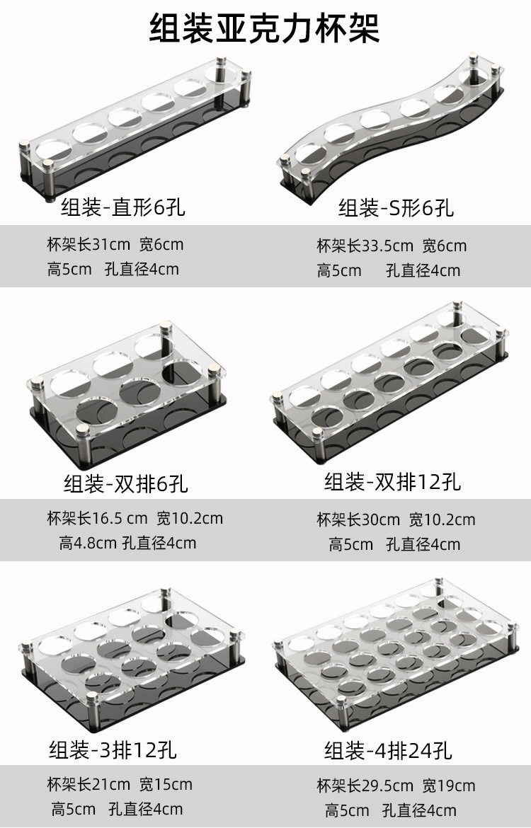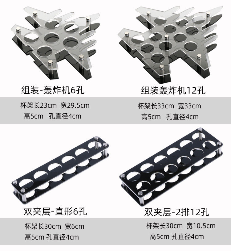 | Color | Black 6-hole rack set [with cups],Black 6-hole rack set [with frosted cup],Wood color 6-hole rack [with cups],Black 6-hole s stand [with cup],Black 6-hole s stand [with frosted cup],Wood color 6-hole rack [with frosted cup],Wood color 6-hole s stand [with cup],Wood color 6-hole s rack [with frosted cup],Black 12-hole rack [with cups],Black 12-hole rack [with frosted cup],Wood color 12-hole rack [with cups],Wood color 12-hole rack [with frosted cup],Acrylic 6-hole rack [with cups],Acrylic 6-hole shelf [with frosted cups],Acrylic 6-hole s stand [with cup],Acrylic 6-hole s stand [with frosted cup],30ml large bullet cup (pack of 12) 12 pieces,30ml large bullet cup (half box) 72 pieces,30ml large bullet cup (one box) 144 pieces,6 thick-bottomed bullet cups (30ml),6 thin-bottom bullet cups (45ml),Straight bullet cup (60ml 6 pieces,Frosted thick-bottomed bullet cups (30ml) 6 pieces,Frosted straight bullet cup (60ml 6 pieces,Assembly—black straight 6 hole,Assembly—transparent straight 6-hole,Imitation wood black s-shaped 6 holes,Imitation wood black straight 6 holes,Bamboo s-shaped 6 holes,Bamboo straight 6 holes,Imitation wood black 12 holes,Bamboo 12 holes,Transparent straight 6 holes,Transparent s-shaped 6 holes,Transparent double row 6 holes,Transparent double row 12 holes,Assembly—straight 6 holes,Assembly—s-shaped 6 holes,Assembly—double row 6 holes,Assembly—double row 12 holes,Assembly—3 rows of 12 holes,Assembly—4 rows of 24 holes,Assembly—bomber 12 holes,Double sandwich—straight 6 holes,Double mezzanine—2 rows of 12 holes,Assembly—straight 6-hole [frosted cup holder],Assembly—s-shaped 6-hole [frosted cup holder],Assembly—double row 12 holes [frosted cup holder],Assembly—3 rows of 12 holes [frosted cup holder],Assembly—4 rows of 24 holes [frosted cup holder],Integrated double row 12 holes [frosted cup holder],45ml thin bottom frosting—6 pieces,15ml small bullet cup (pack of 12) 12 pieces,15ml small bullet cup (half box) 144 pieces,15ml small bullet cup (one box) 288 pieces |