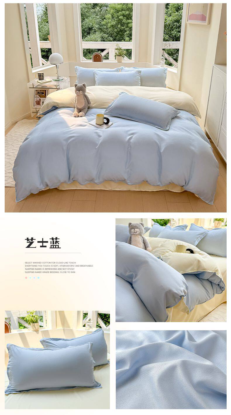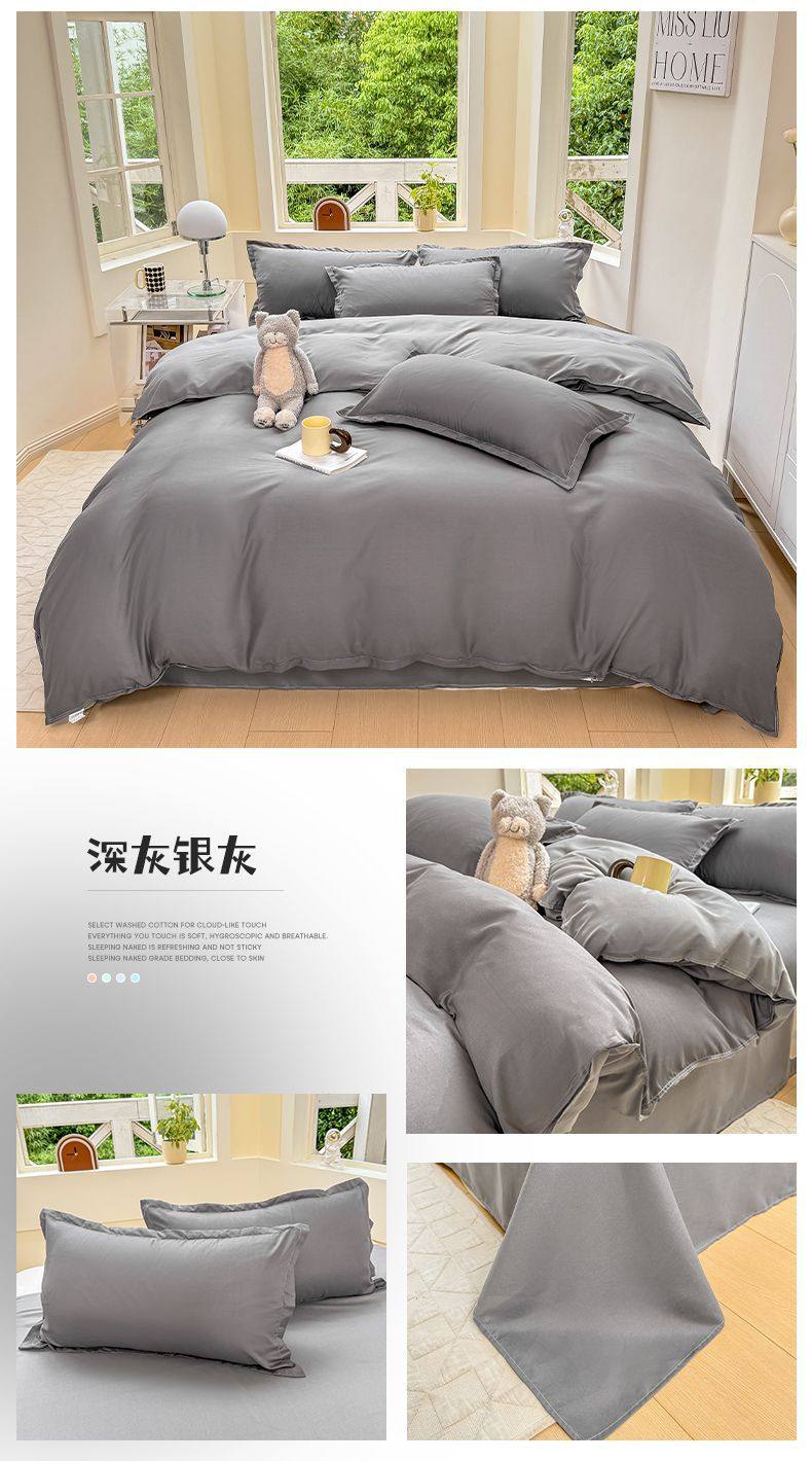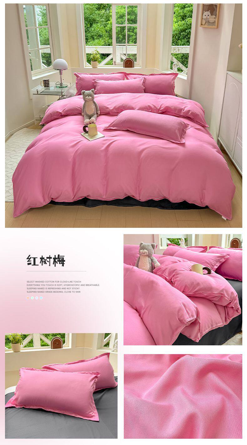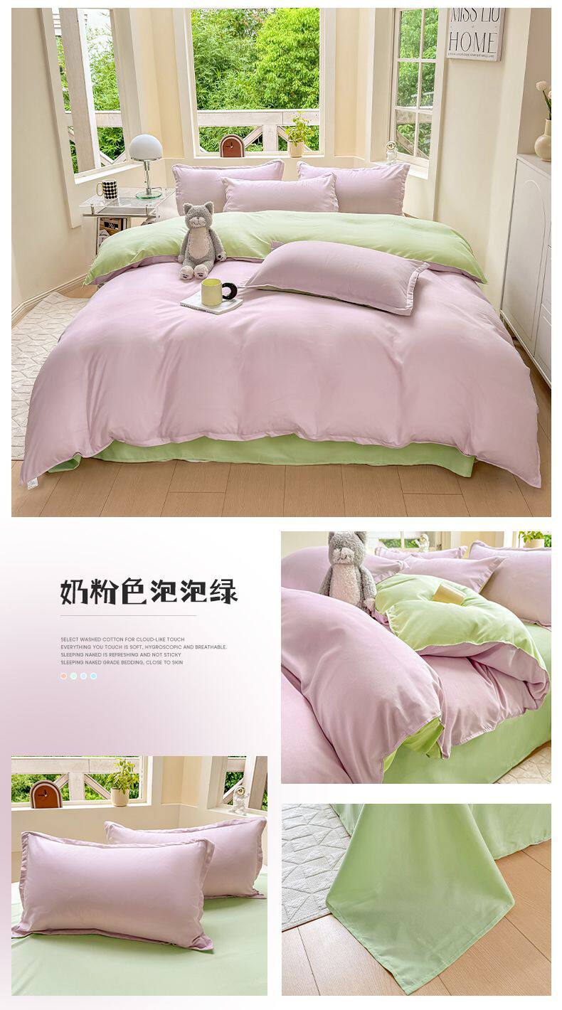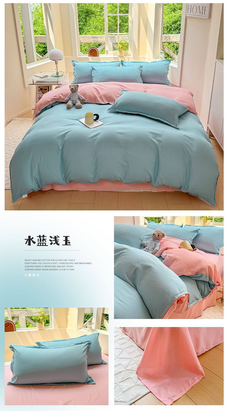 Ins small fresh four-piece set skin-friendly water-washed cotton sanding single bed sheet quilt cover student dormitory three-piece set wholesale