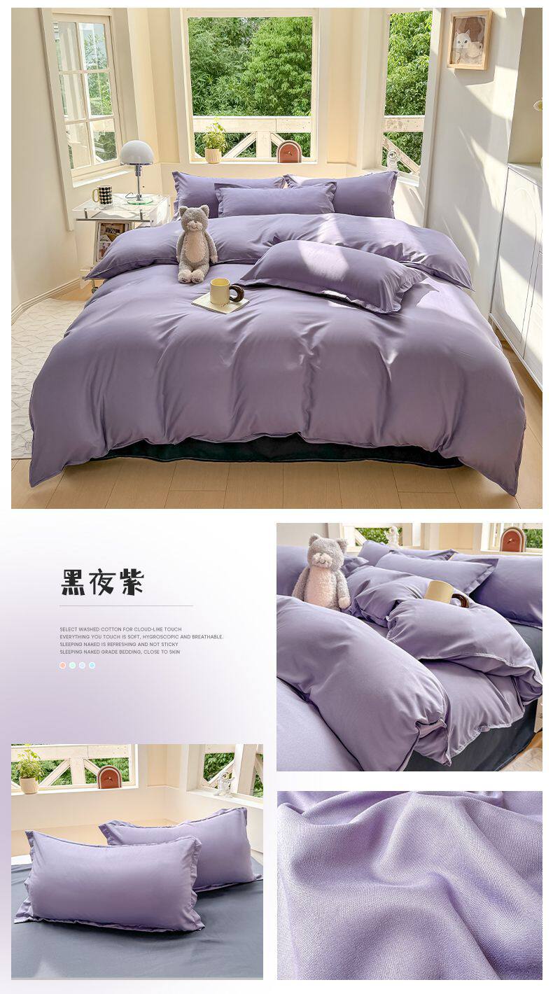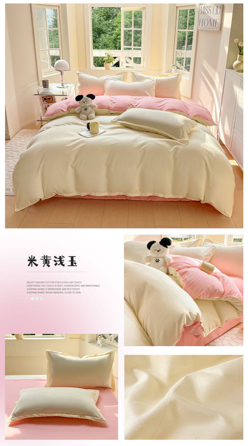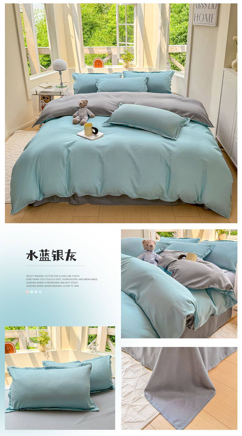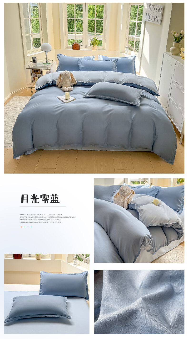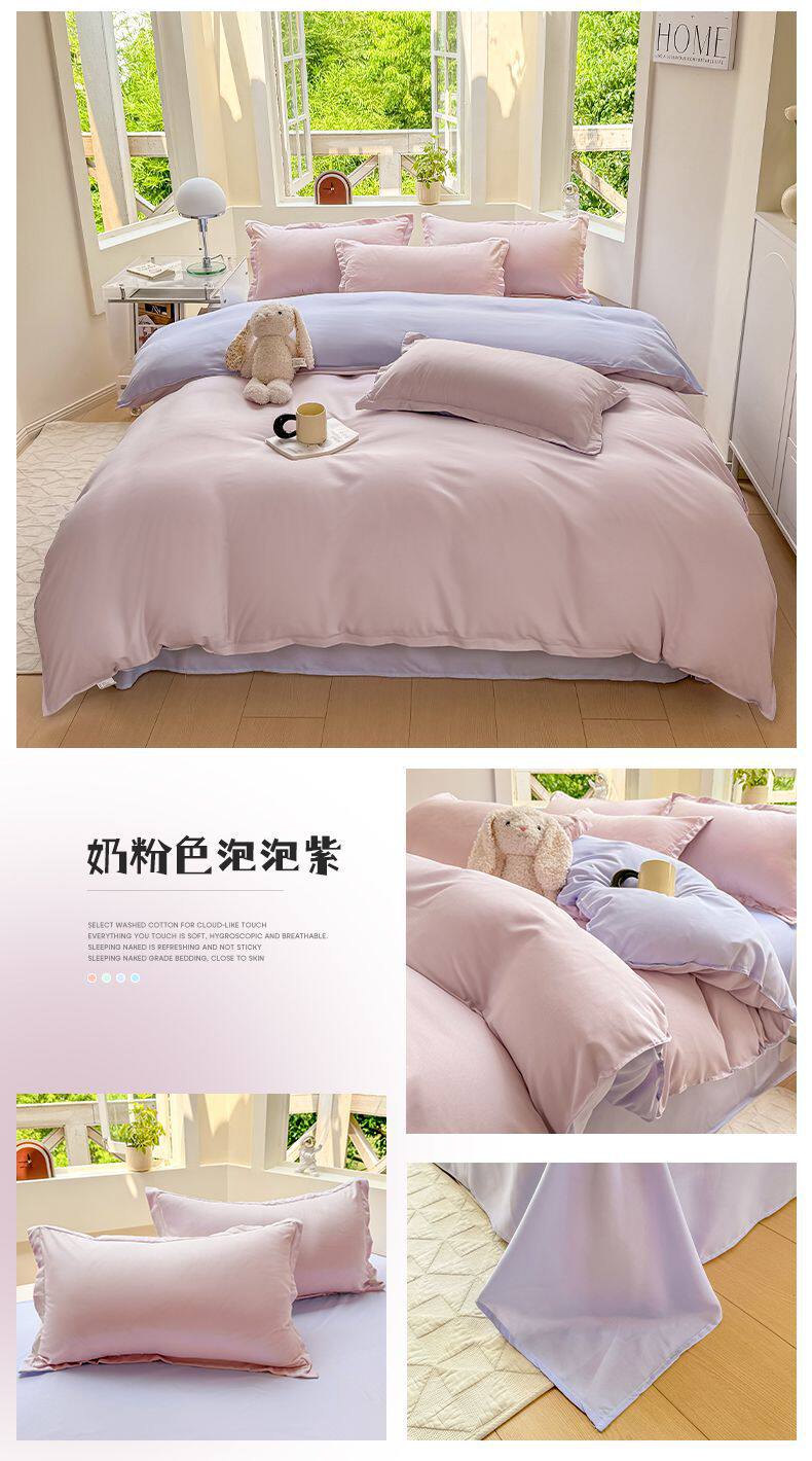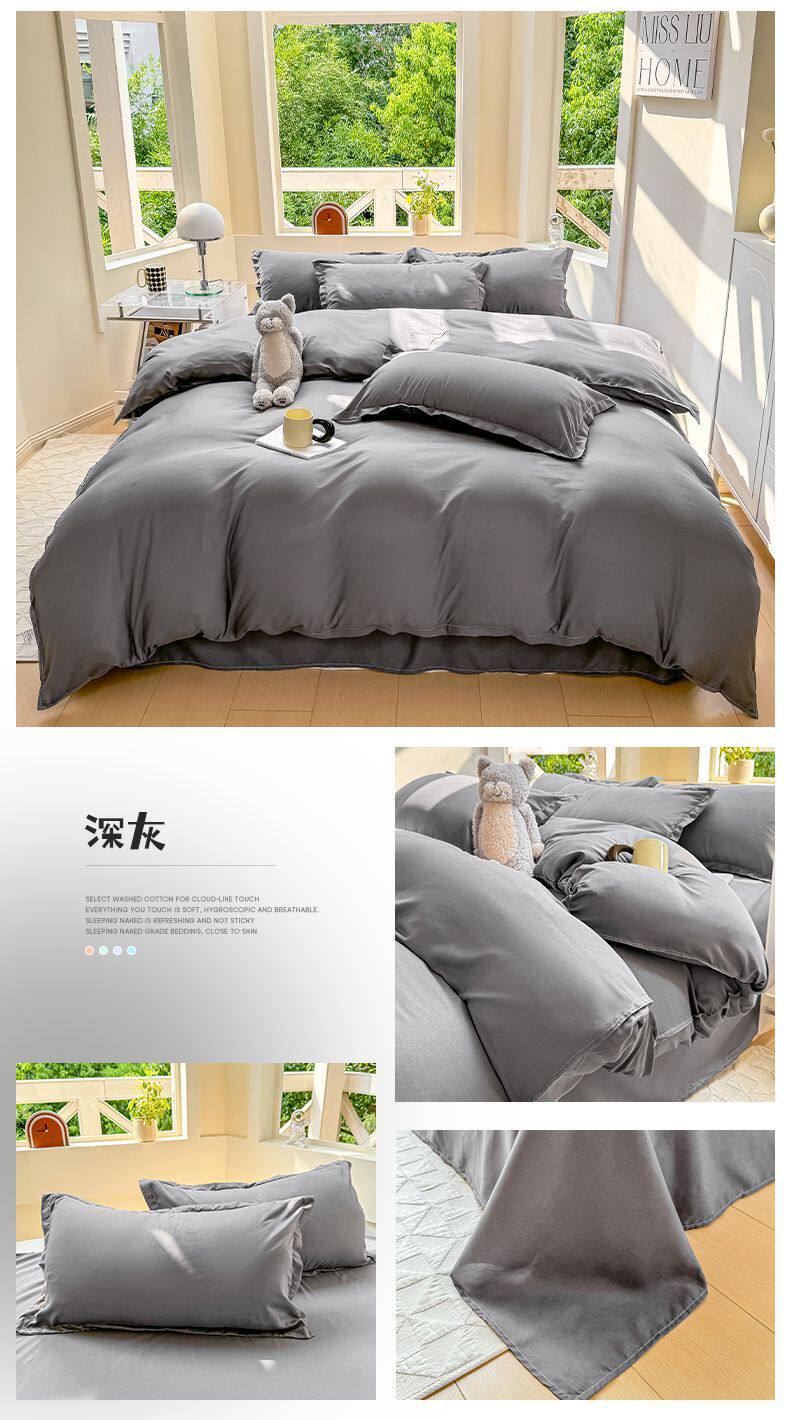 Ins small fresh four-piece set skin-friendly water-washed cotton sanding single bed sheet quilt cover student dormitory three-piece set wholesale