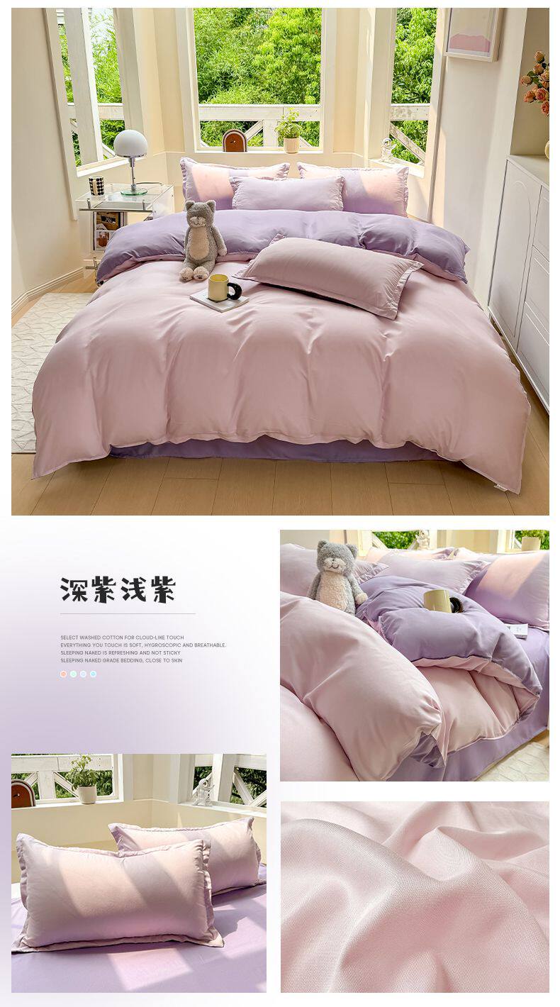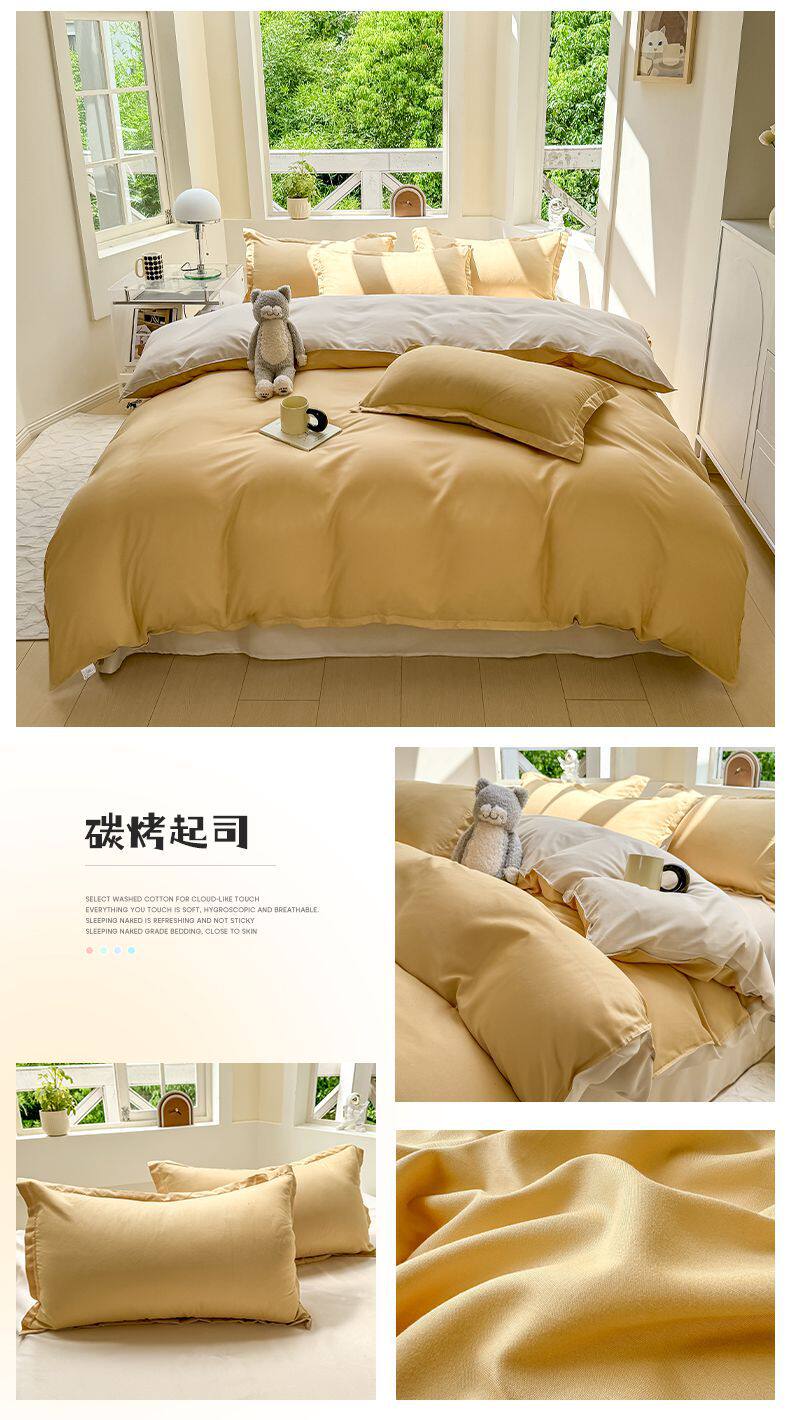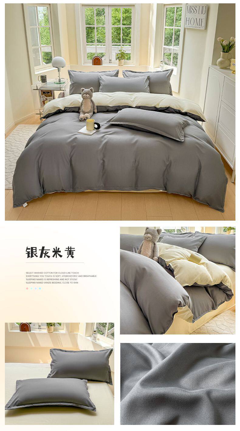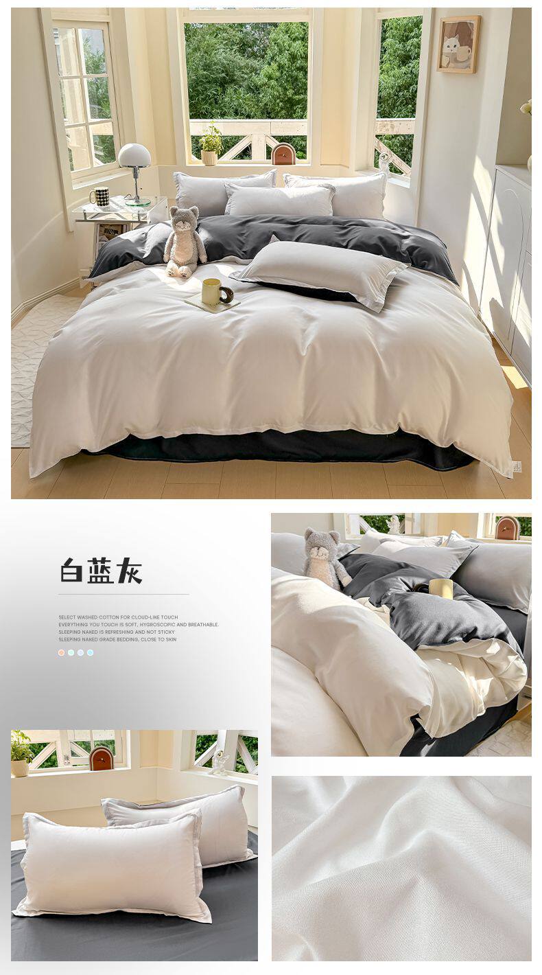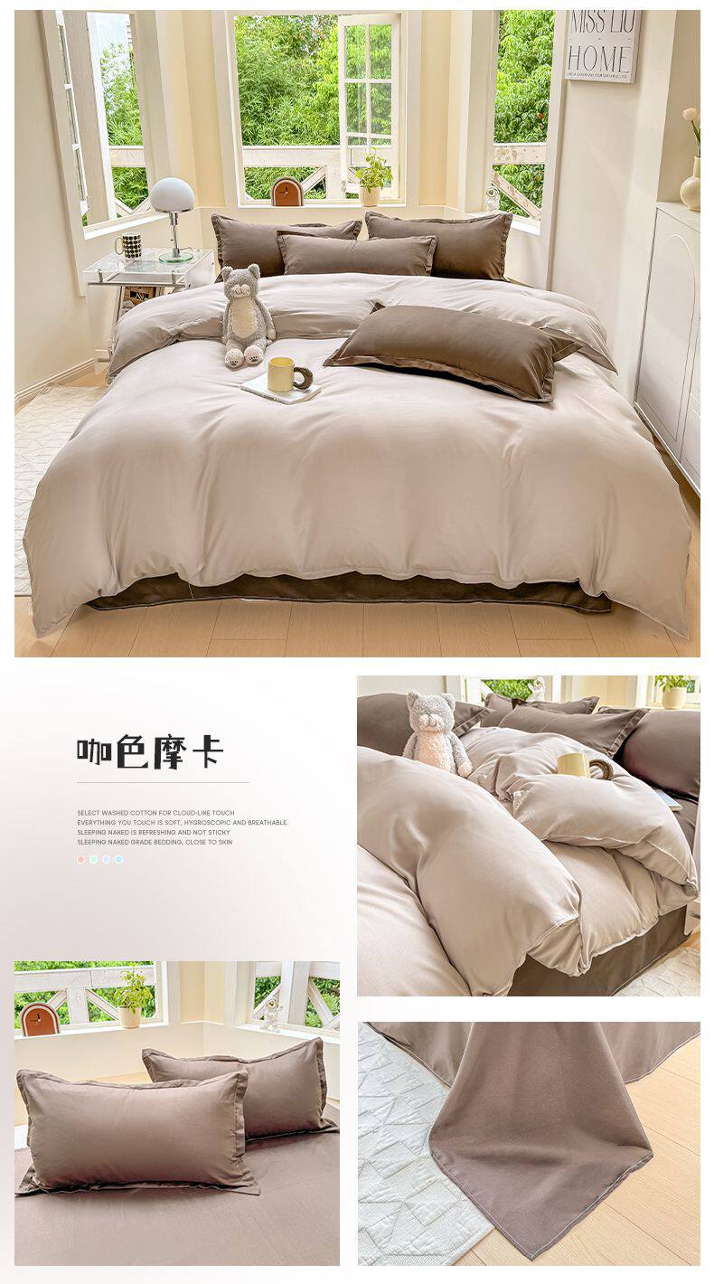 Ins small fresh four-piece set skin-friendly water-washed cotton sanding single bed sheet quilt cover student dormitory three-piece set wholesale