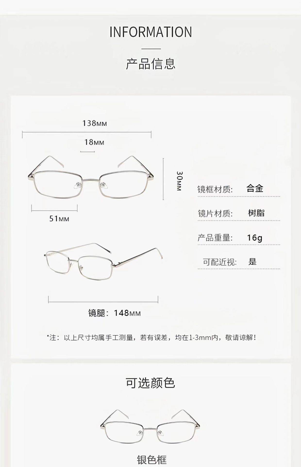 | Lens | 0 degree flat mirror,Myopia glasses 100 degrees,Myopia glasses 150 degrees,Myopia glasses 200 degrees,Myopia 250 degrees,Myopia glasses 300 degrees,Myopia glasses 350 degrees,Myopia glasses 400 degrees |