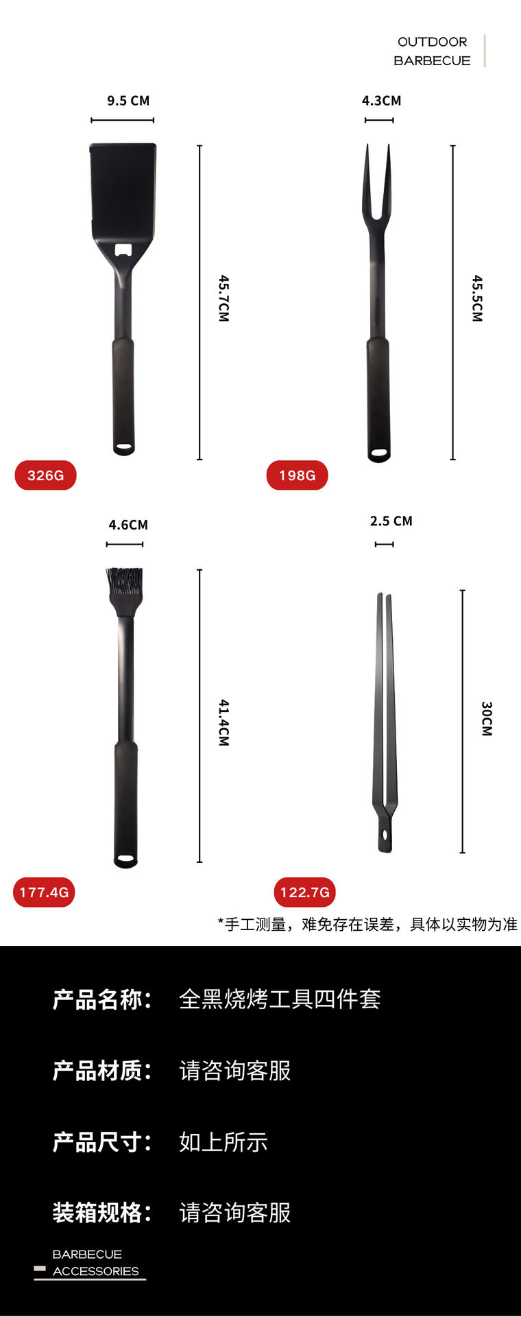 | Specification | Set of 4,Barbecue spatula,Barbecue fork,Oil brush,Bbq tongs |