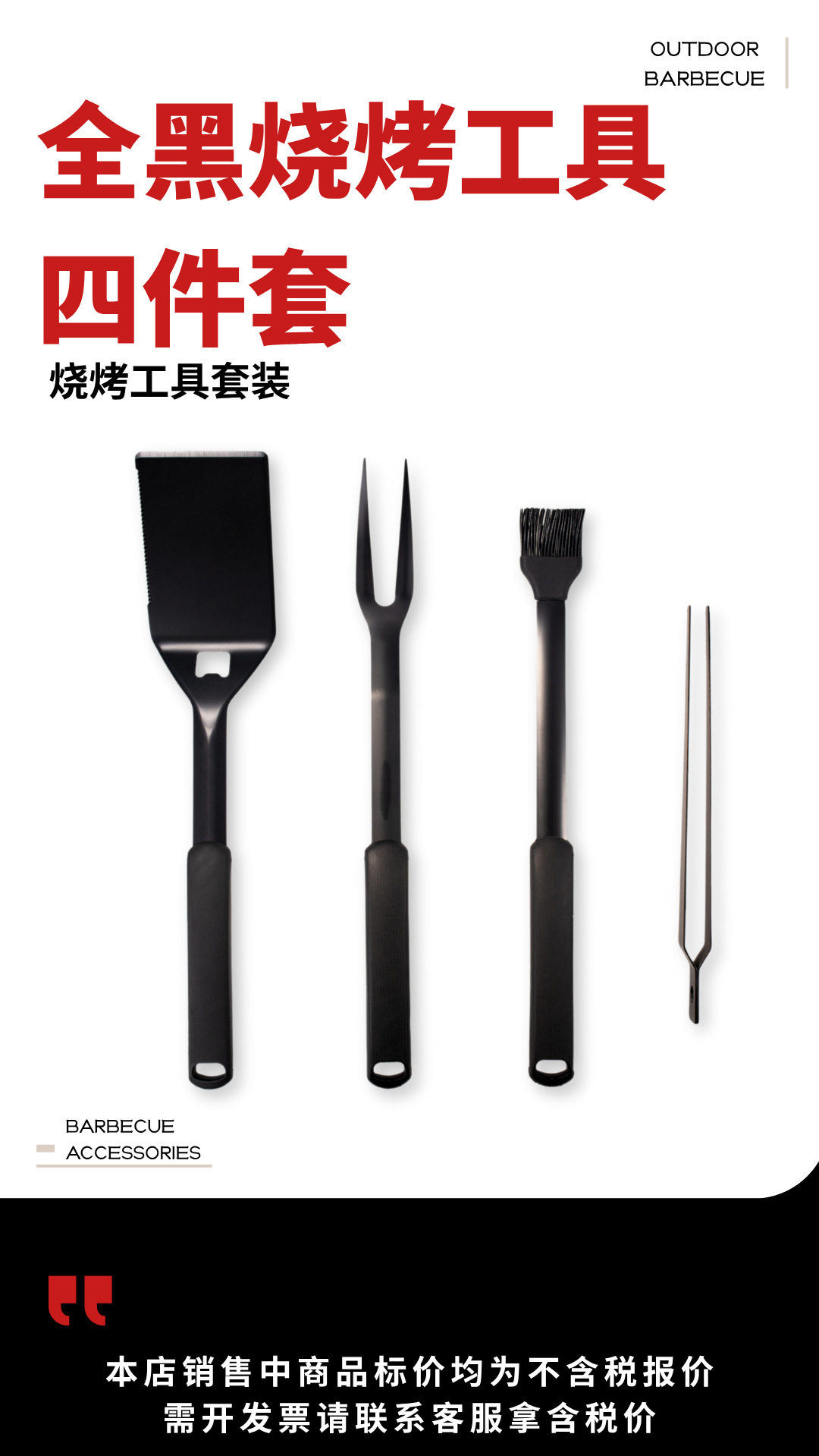 Cross-Border Amazon 4-Piece All-Black Family Bbq Grill Set for Home Outdoor Camping Barbecue Tool Combination Set