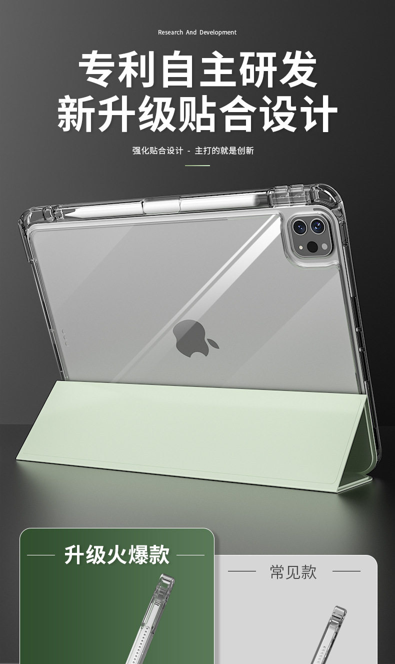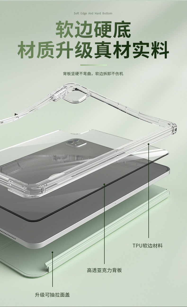 iPad case air5 full screen transparent 2024pro11 inch flat anti-bending 2022iPad10 slide rail removal