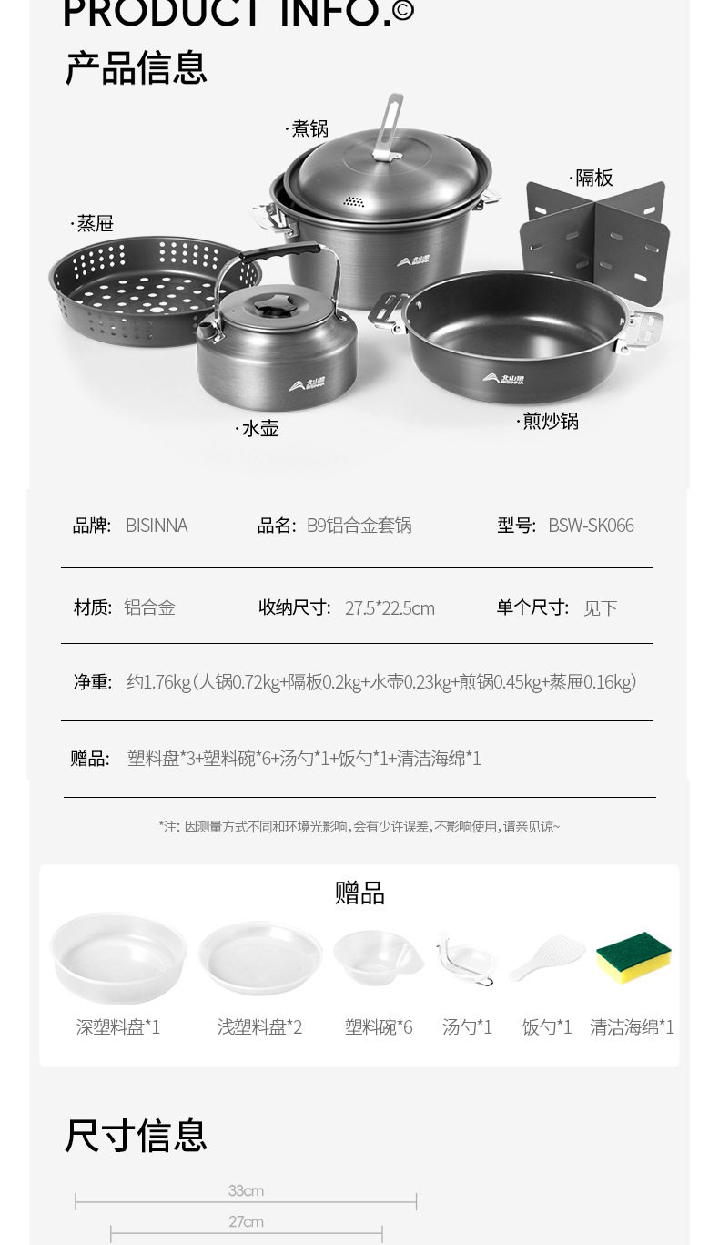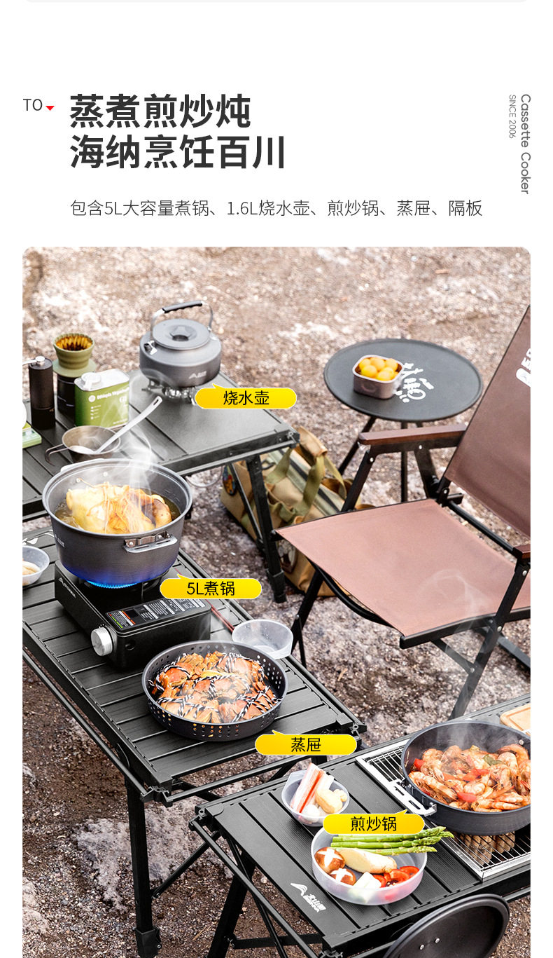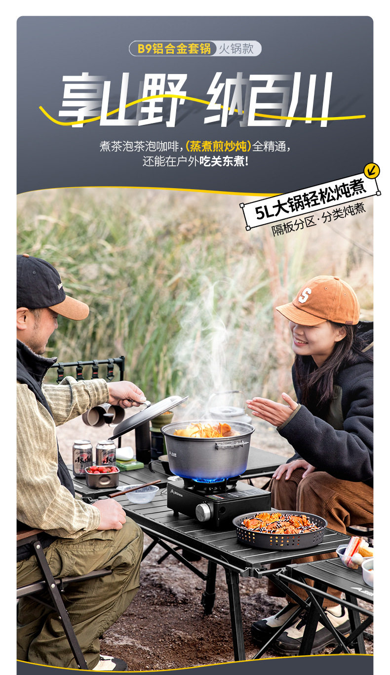 | Color | 【5l stew pot|Meteorite gray g1]: partition + storage bag,【5l stew pot|Meteorite g2]: steamer + storage bag,【5l stew pot | Meteorite g3]: steamer + partition + storage bag,B9 complete set: large cooking pot + frying pan + 1.6l kettle + steamer + partition |
