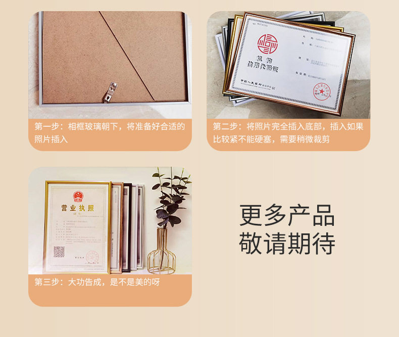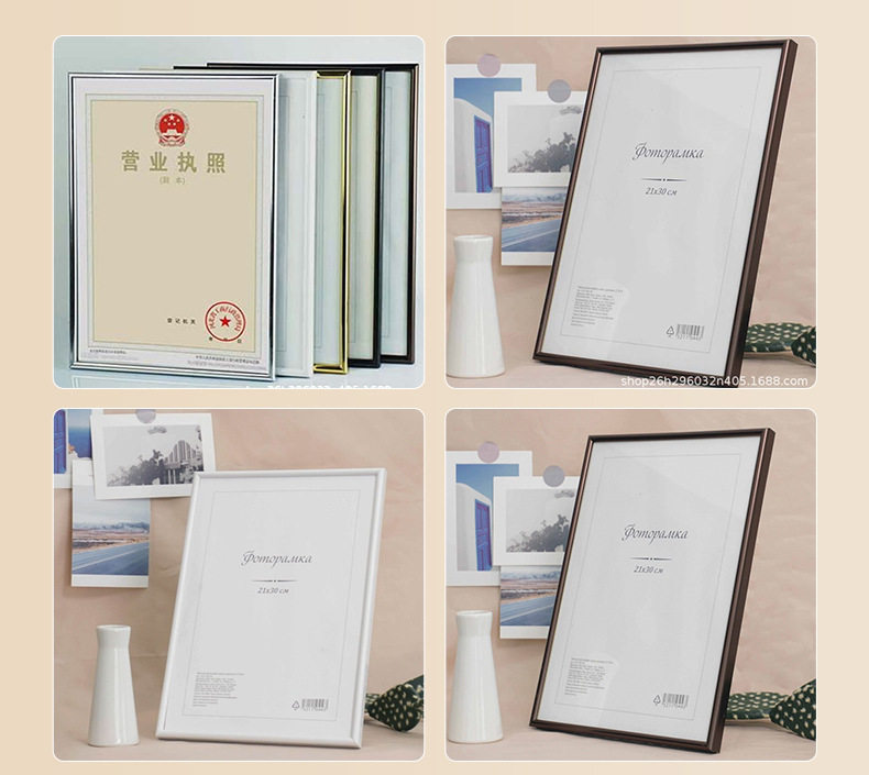 A4~A5 Horizontal and Vertical Dual-Purpose Photo Frame Certificate Certificate Ornaments Display Photo Frame Imitation Aluminum Alloy Business License Frame