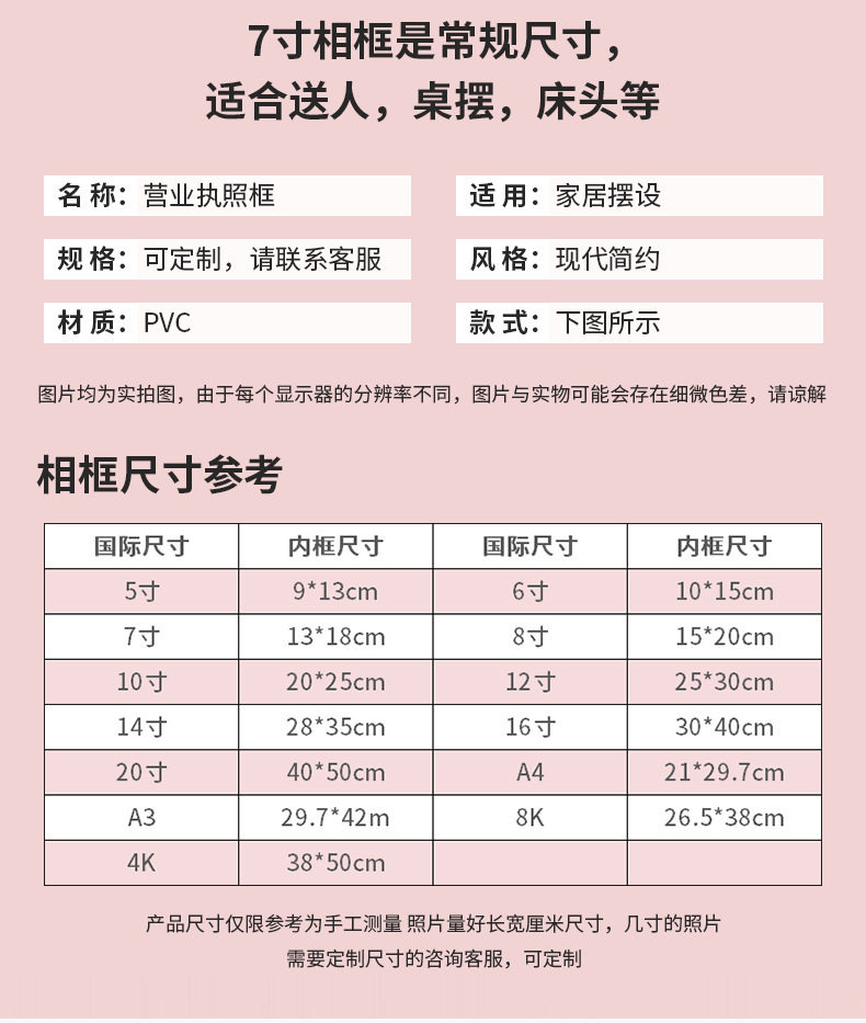 | Inner frame size | 6inch 【10*15】,8inch 【15*20】,10inch 【20*25】,A3【29.7*42】,A4 |