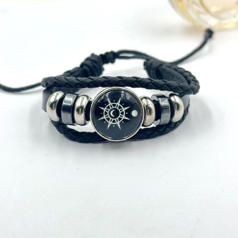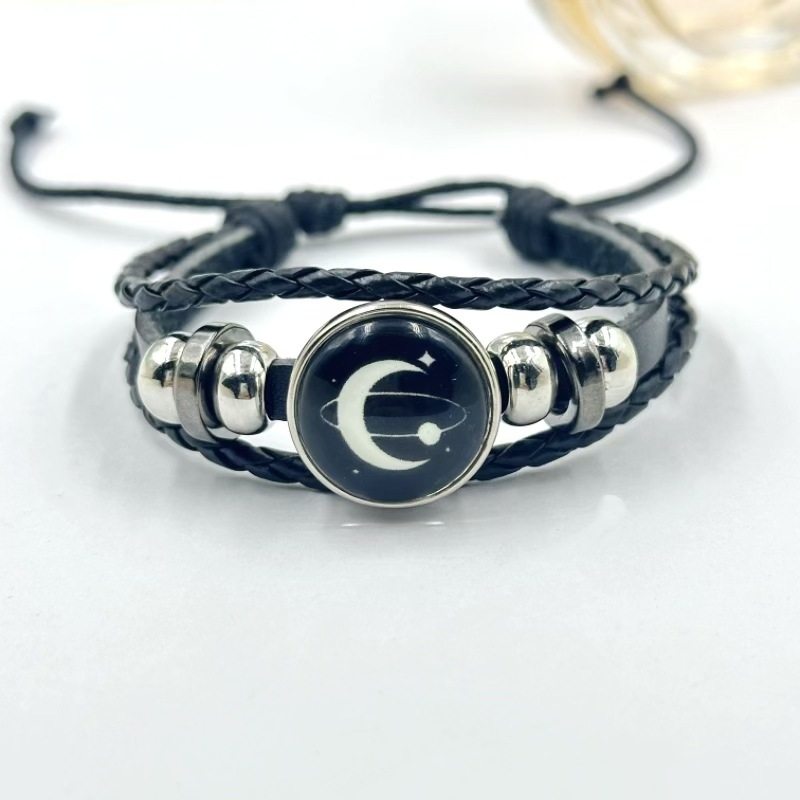 Glow-In-The-Dark Sun and Moon Lover Time Gemstone Bracelet Unisex Retro Handmade Multi-Layered Beaded Woven Leather Bracelet