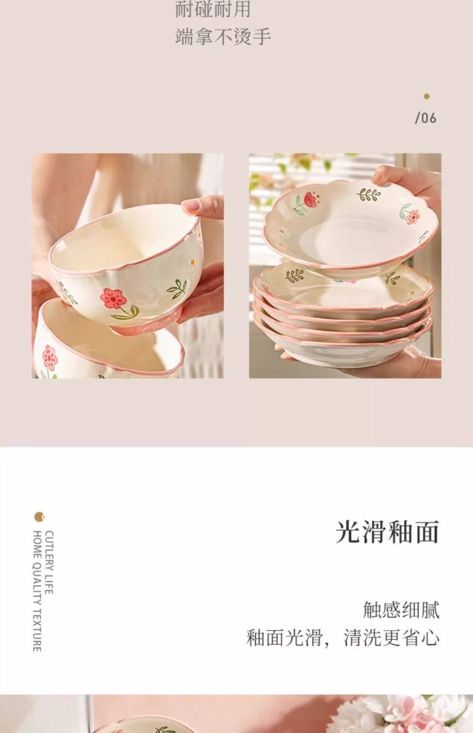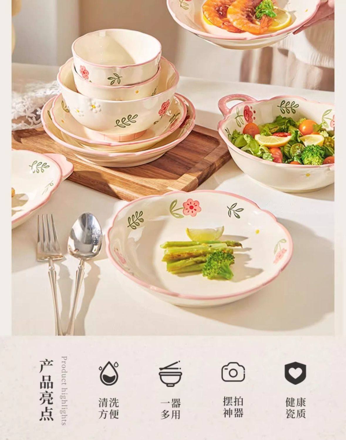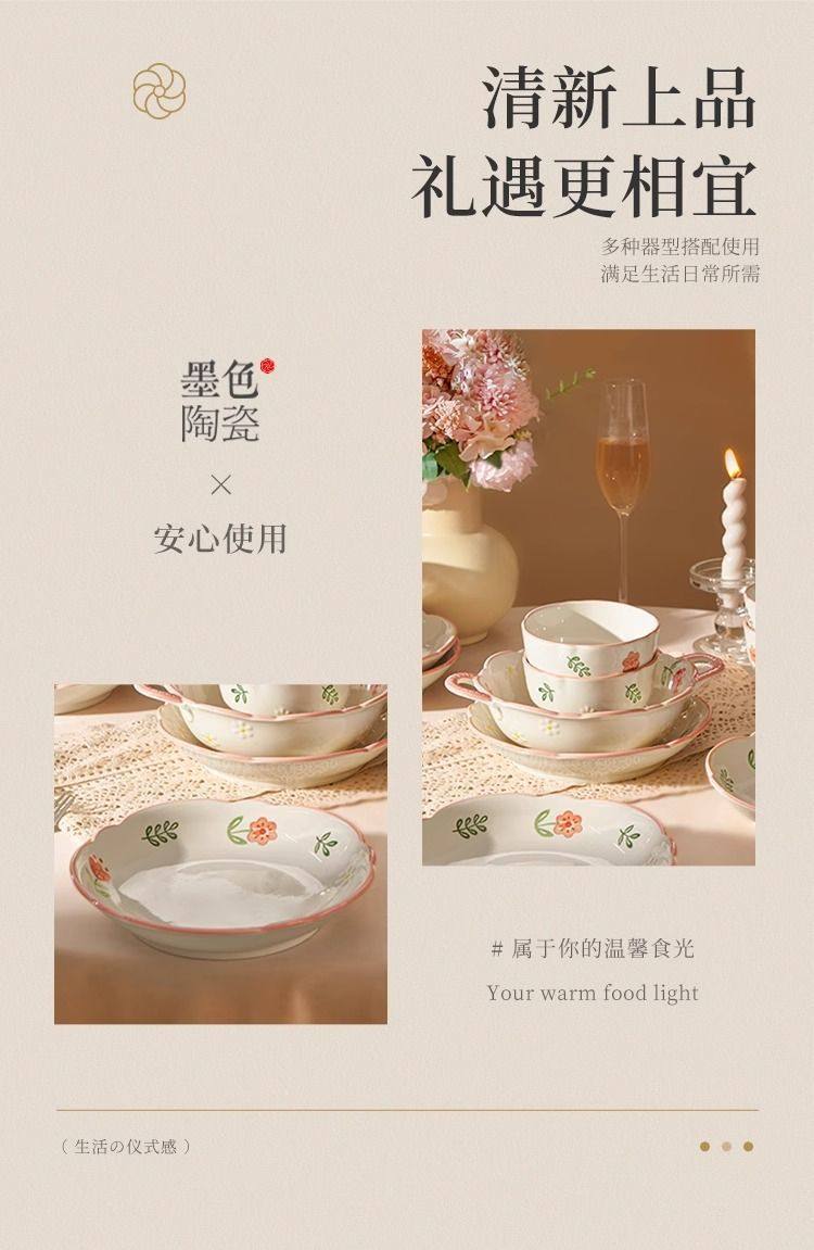 New Style Ceramic Plate Fresh Dish Plate Deep Dish Household suit New Underglaze Color Ins High Color Value Good-looking Dish