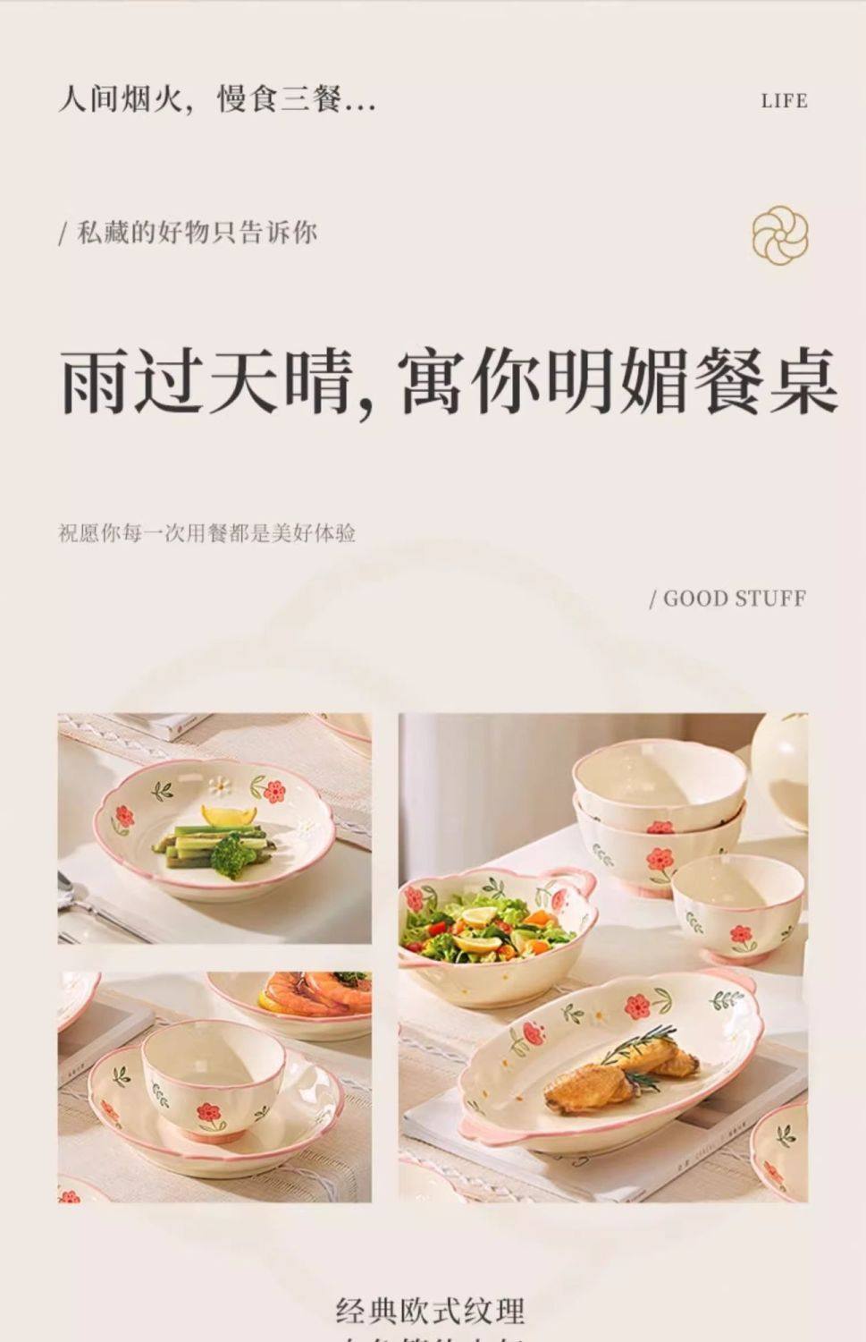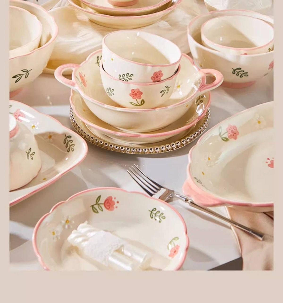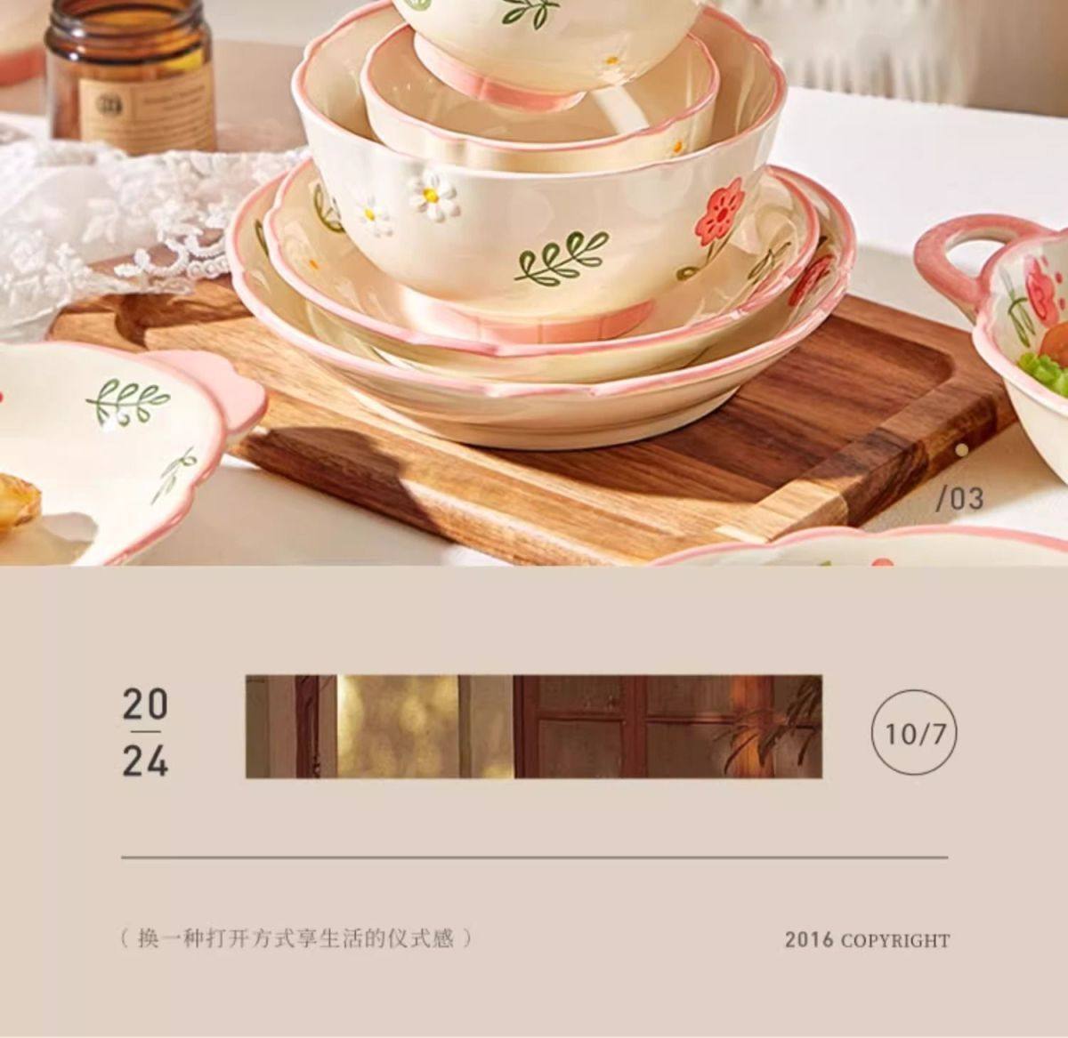 New Style Ceramic Plate Fresh Dish Plate Deep Dish Household suit New Underglaze Color Ins High Color Value Good-looking Dish