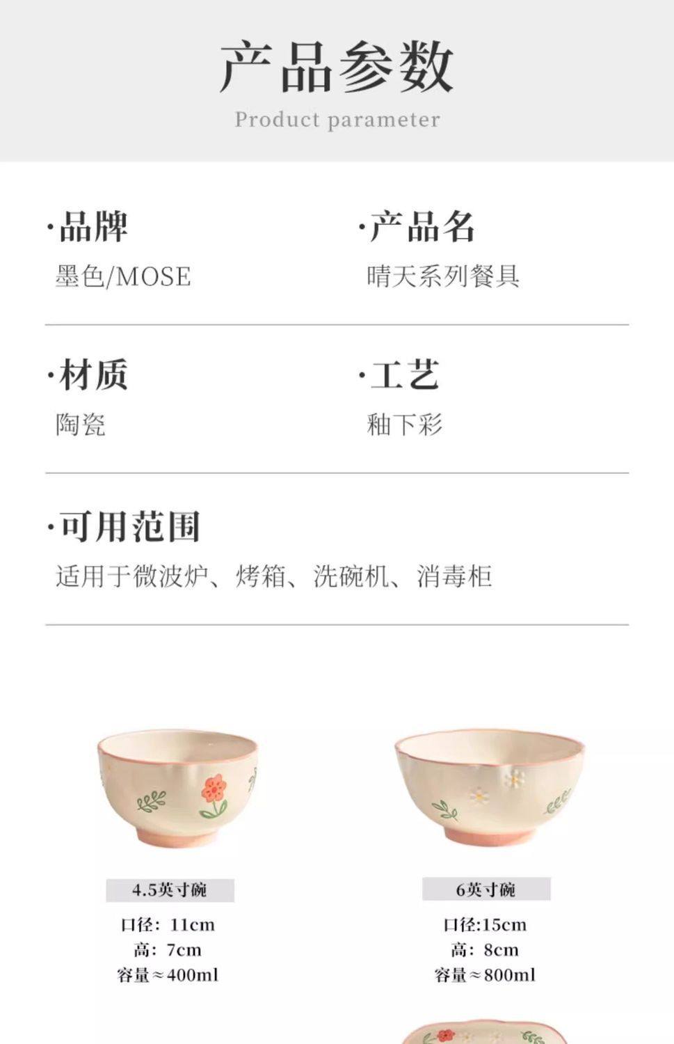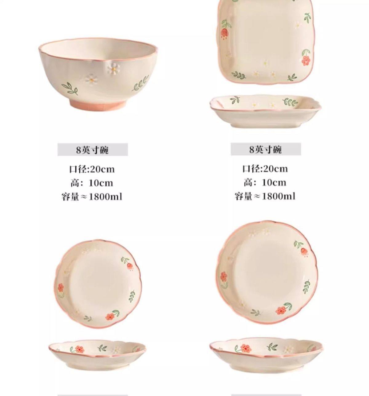 | Color | Sunny day- 4.5inch bowl*1,Sunny day- 4.5inch bowls*2,Sunny day- 4.5inch bowls*4,Sunny day- 4.5inch bowls*6,Sunny day- 6inch noodle bowl*1,Sunny day- 6inch noodle bowl*2,Sunny day- 8inch disc*1,Sunny day- 8inch disc*2,Sunny day- 8inch square plate*2,Sunny day- 8inch square plate*1,Sunny day- 8inch large soup bowl*1,Sunny day- 9.5inch double-eared large soup bowl*1,Sunny day- 12inch double-eared fish bowl*1 |