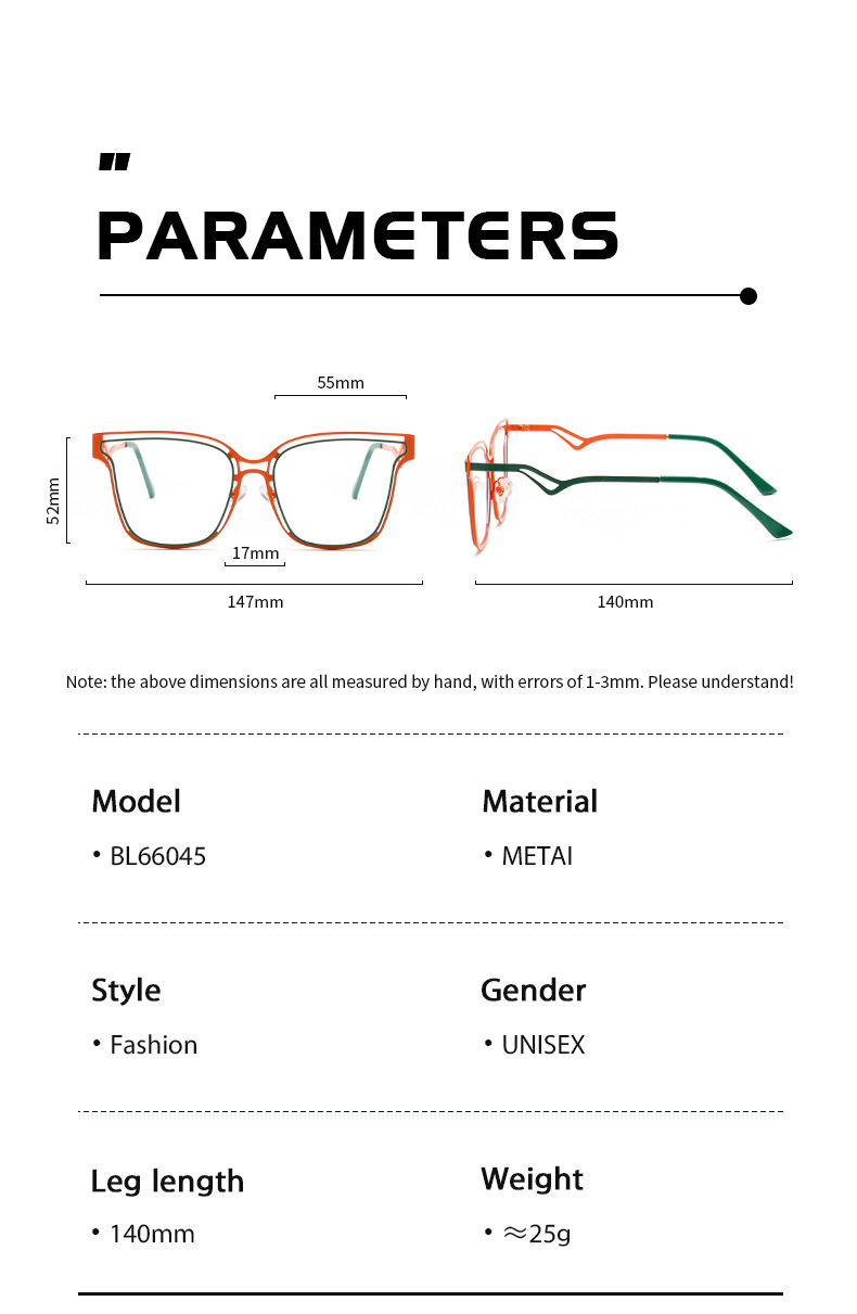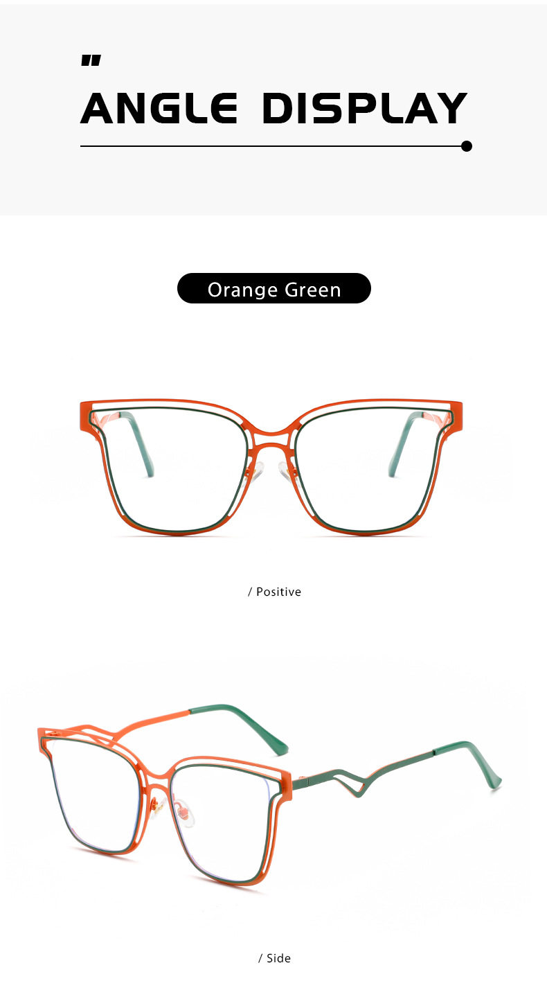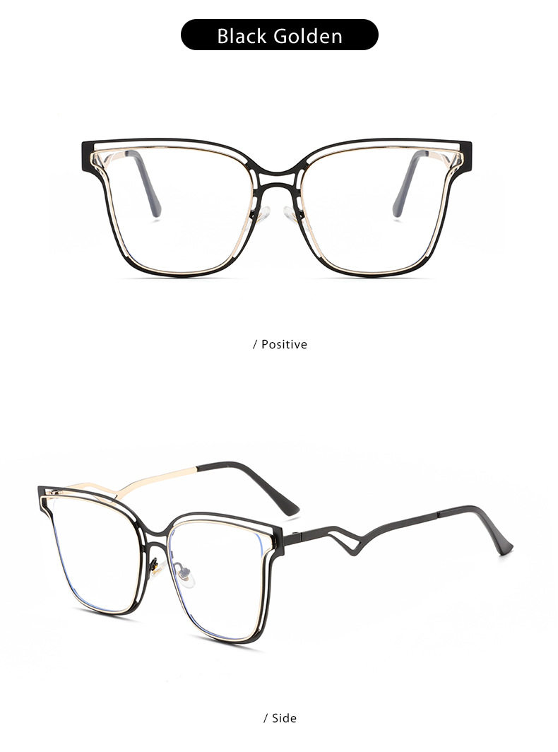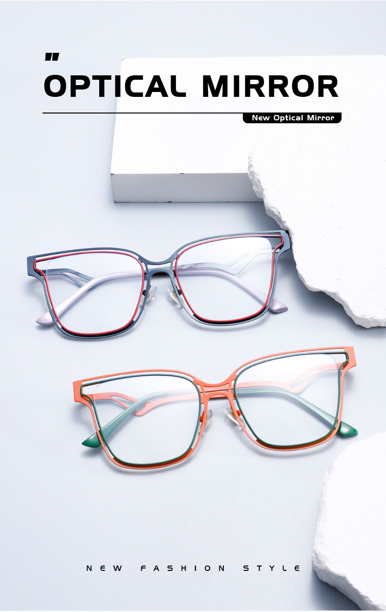 Cross-Border Trendy Large-Frame Metal Thin-Leg Plain Glasses Frame European and American Ins Style Internet Celebrity Street Photography Anti-Blue Light Flat Mirror