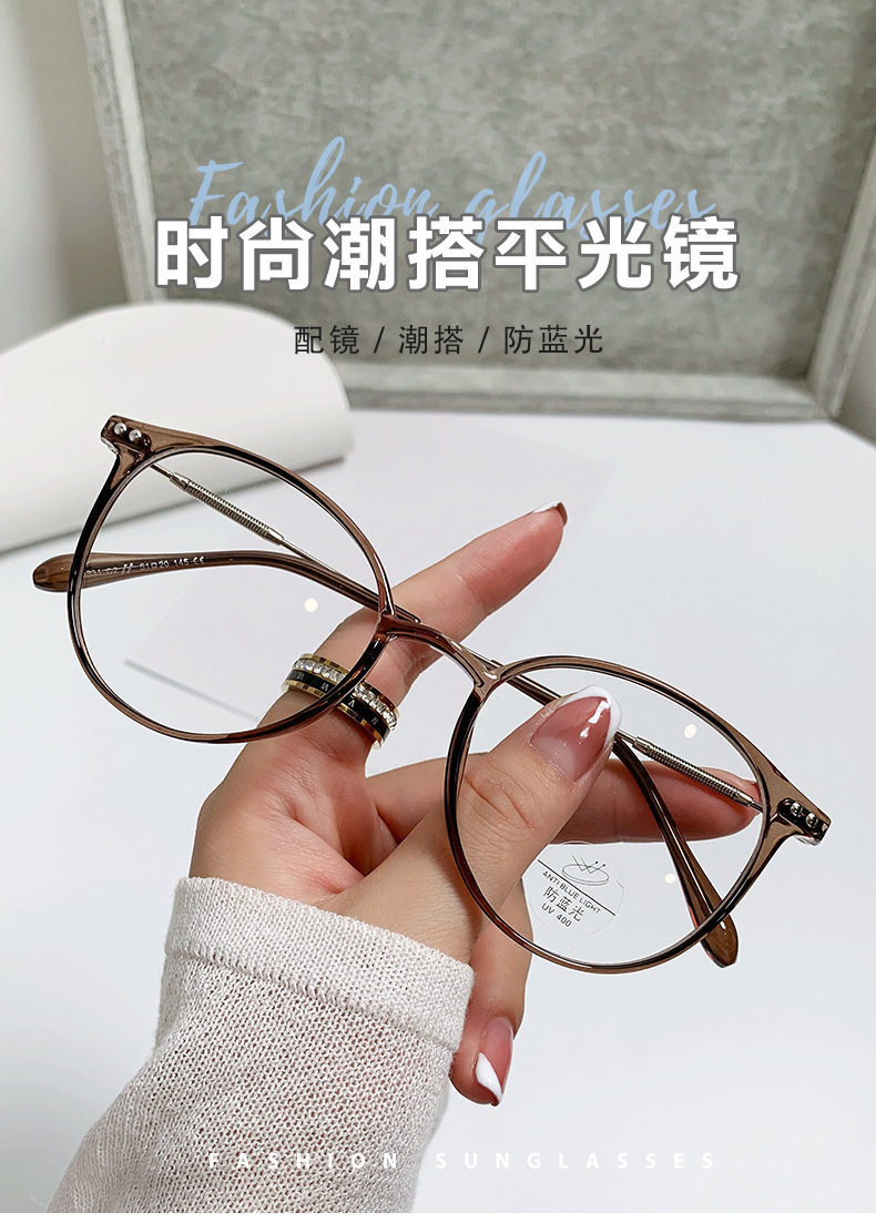Red Riding Book Ultra-light Myopia Glasses Women's Cold Tea Anti-blue Glasses Round Face Can be Equipped with Optical Frame