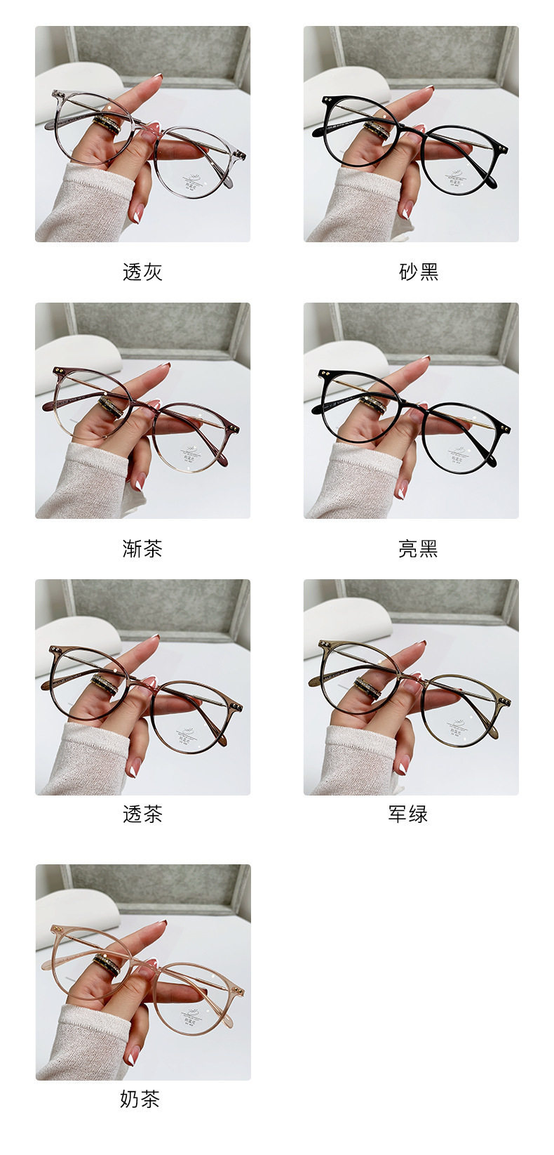 | Frame color | Through tea frame,Glossy black frame,Transparent gray frame,Transparent,Sand black frame,Gradient purple |