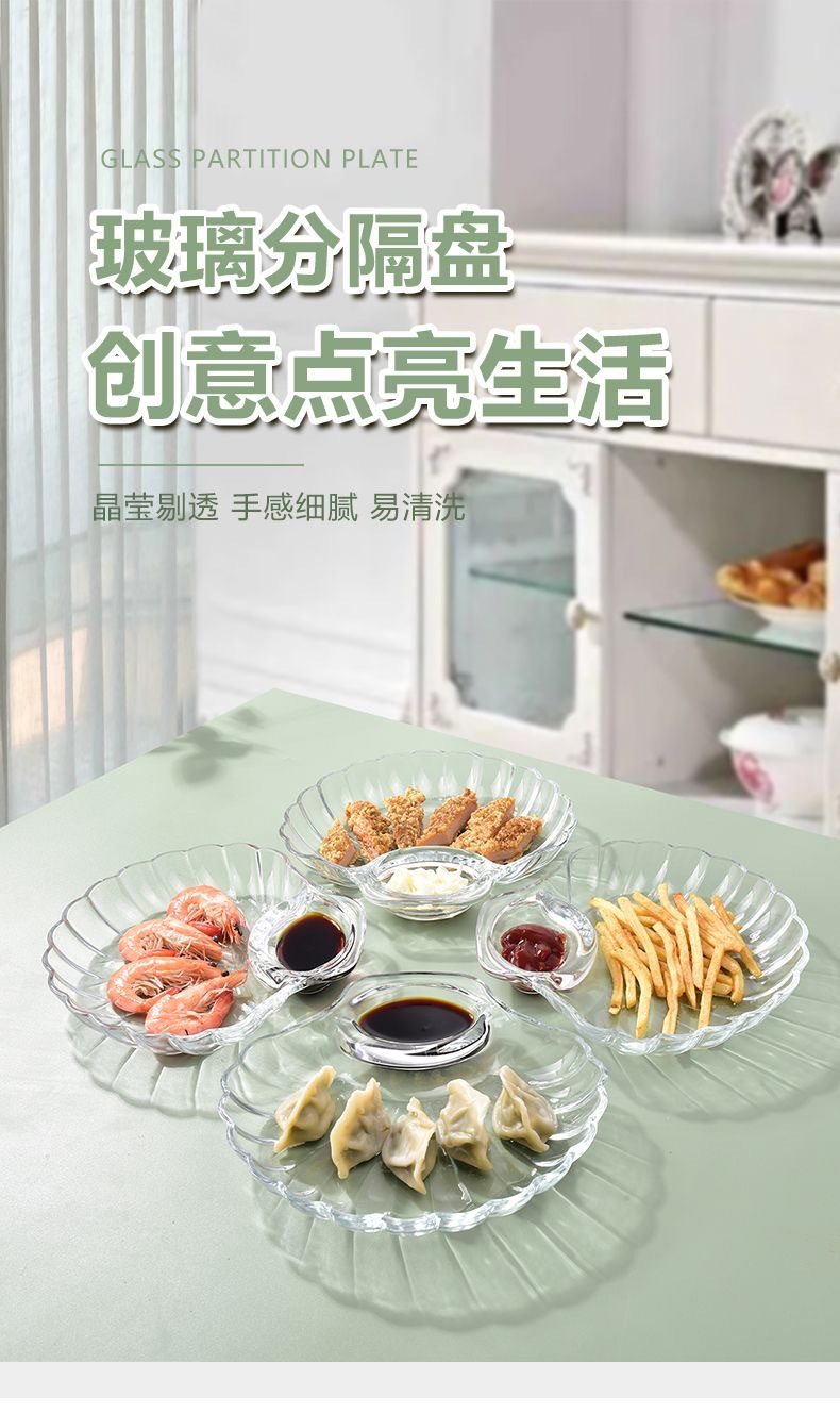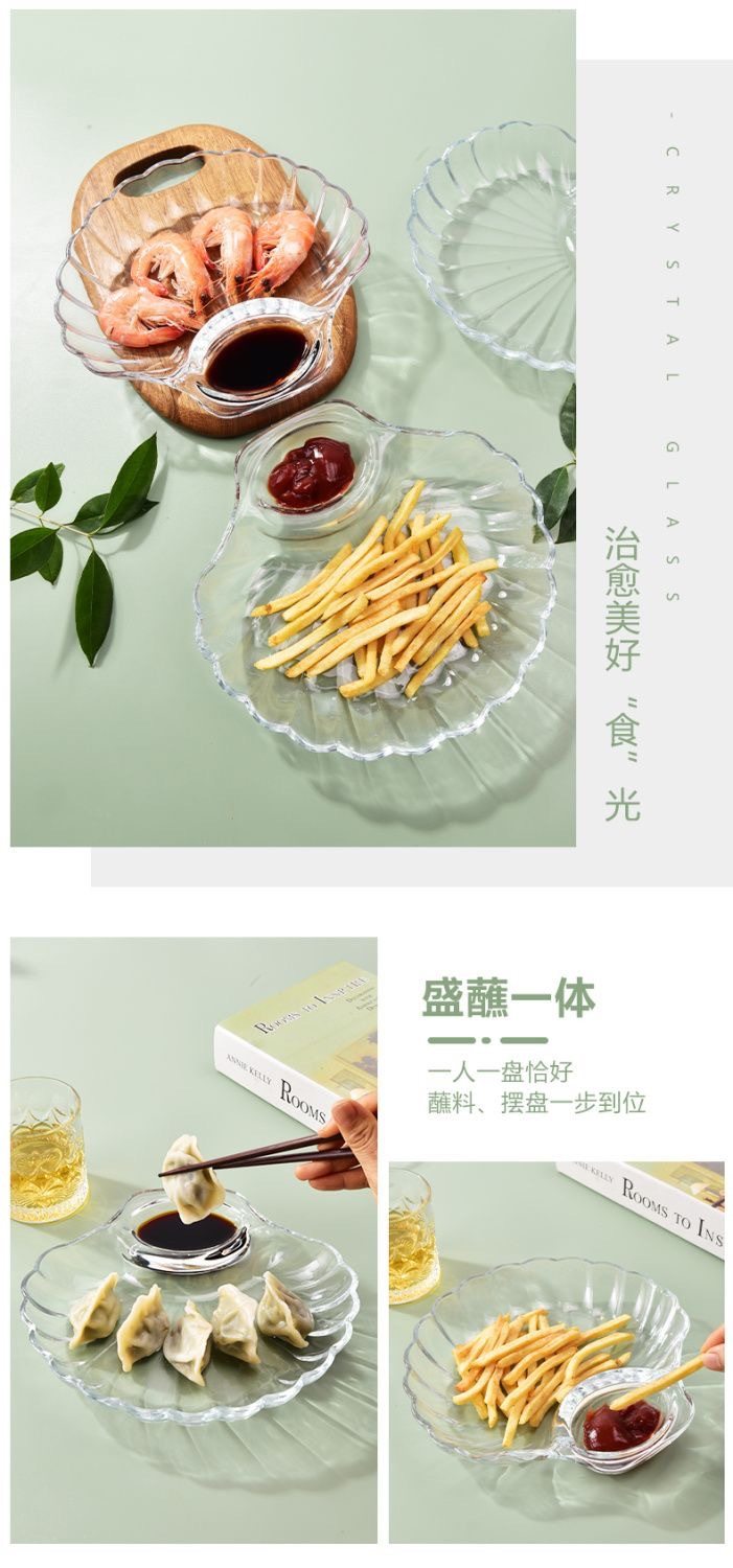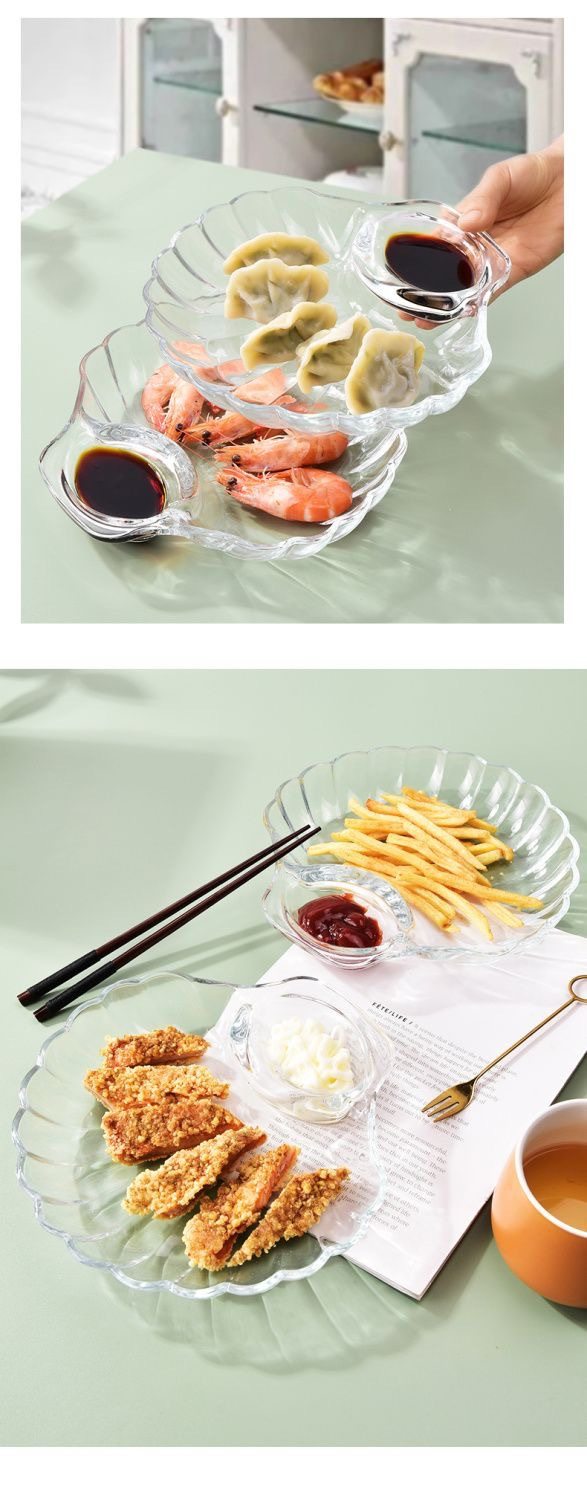 Glass Dumplings Dumplings Plate with Dip Dish European Style Creative Home Salah Bowl Fruit Plate Split Plate