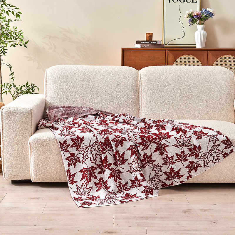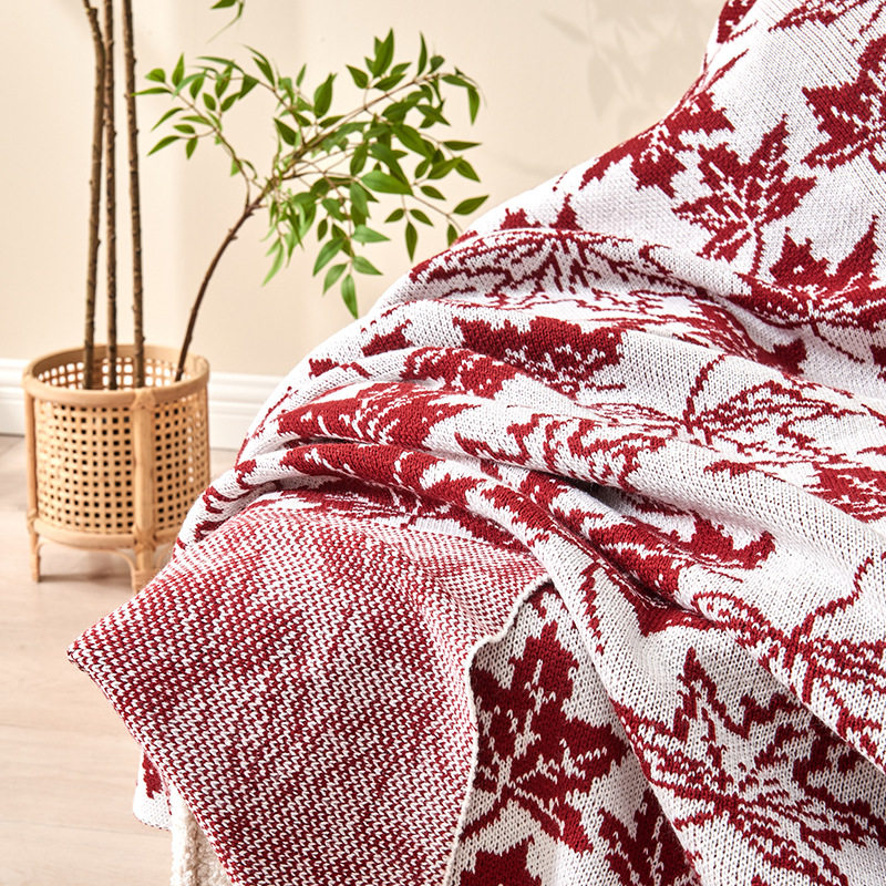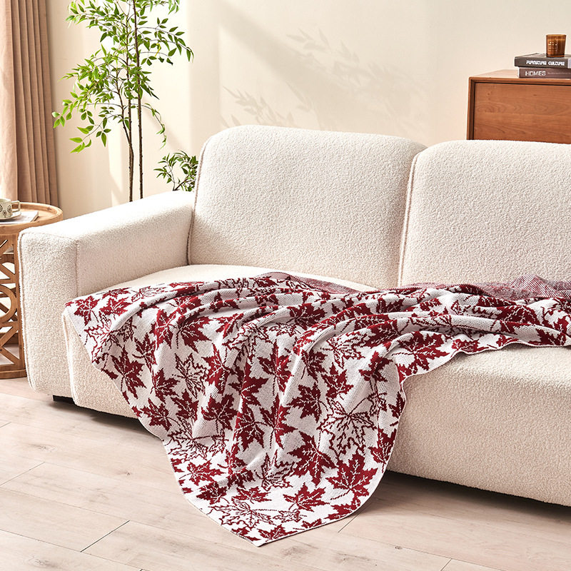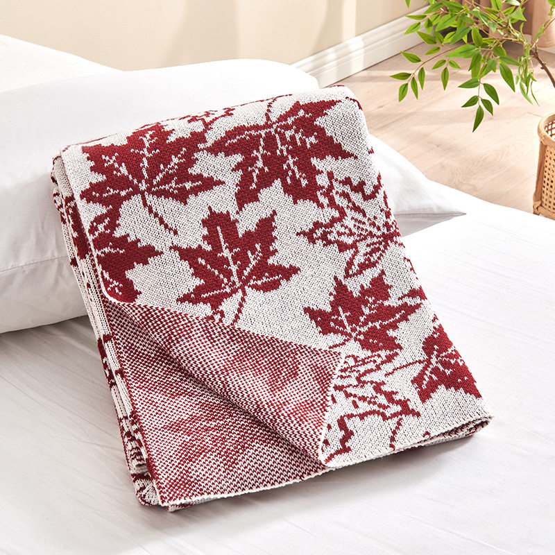 Factory wholesale maple leaf knitted blanket soft skin beauty salon office nap air conditioning blanket gift blanket