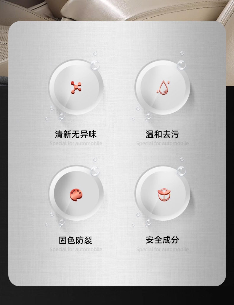 | Color classification | Car leather cleaner bottle-200ml,Two bottles of car leather cleaner-400ml,Three bottles of car leather cleaner-600ml,Five bottles of car leather cleaner-1000ml |