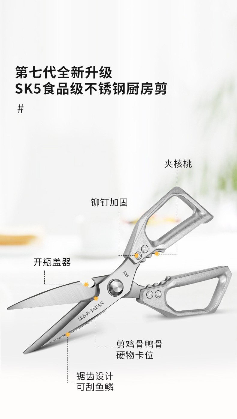Japanese SK5 Household Kitchen Scissors Stainless Steel Multi-function Shear Special Strong Chicken Bone Shear Skill Fish Supplementary Food