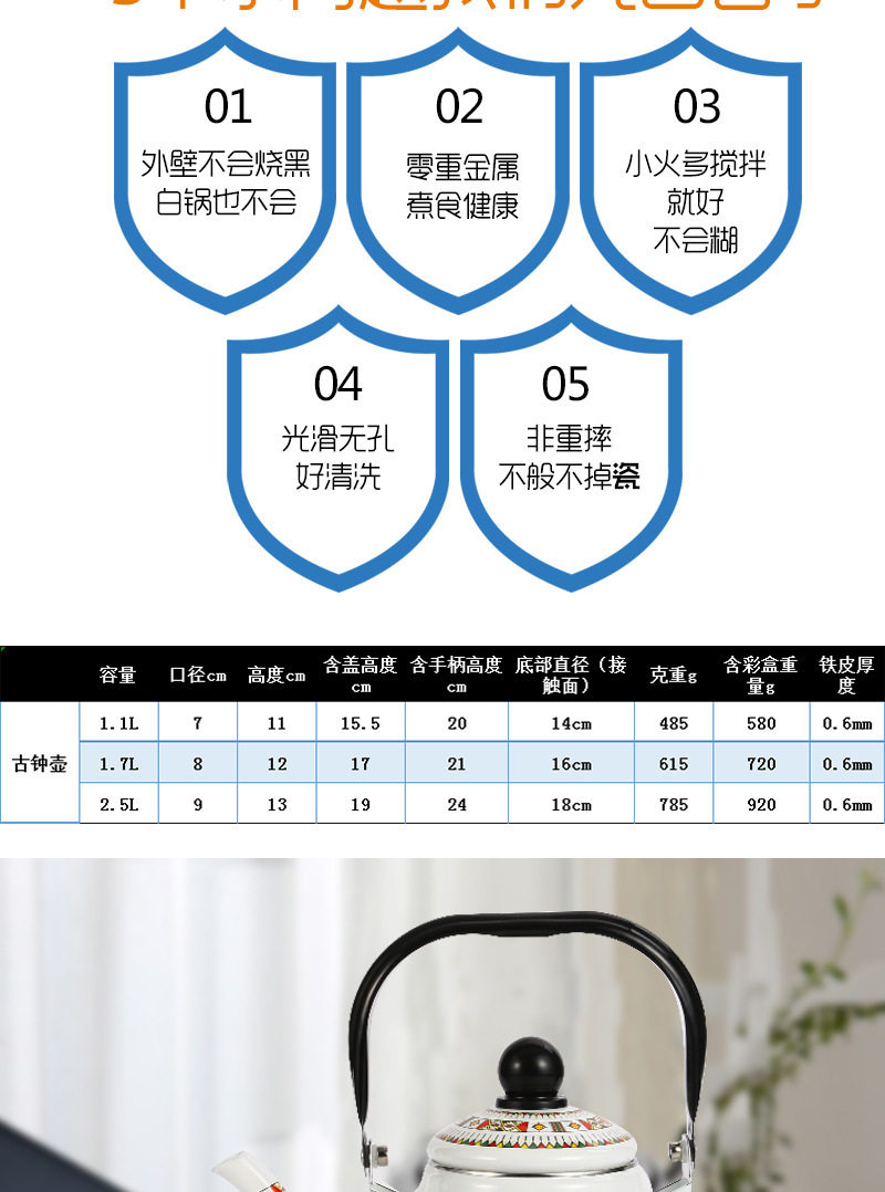 Export European and American quality enamel 2.5L teapot enamel pot enamel pot kettle AliExpress for induction cooker