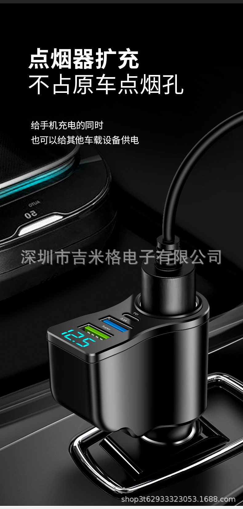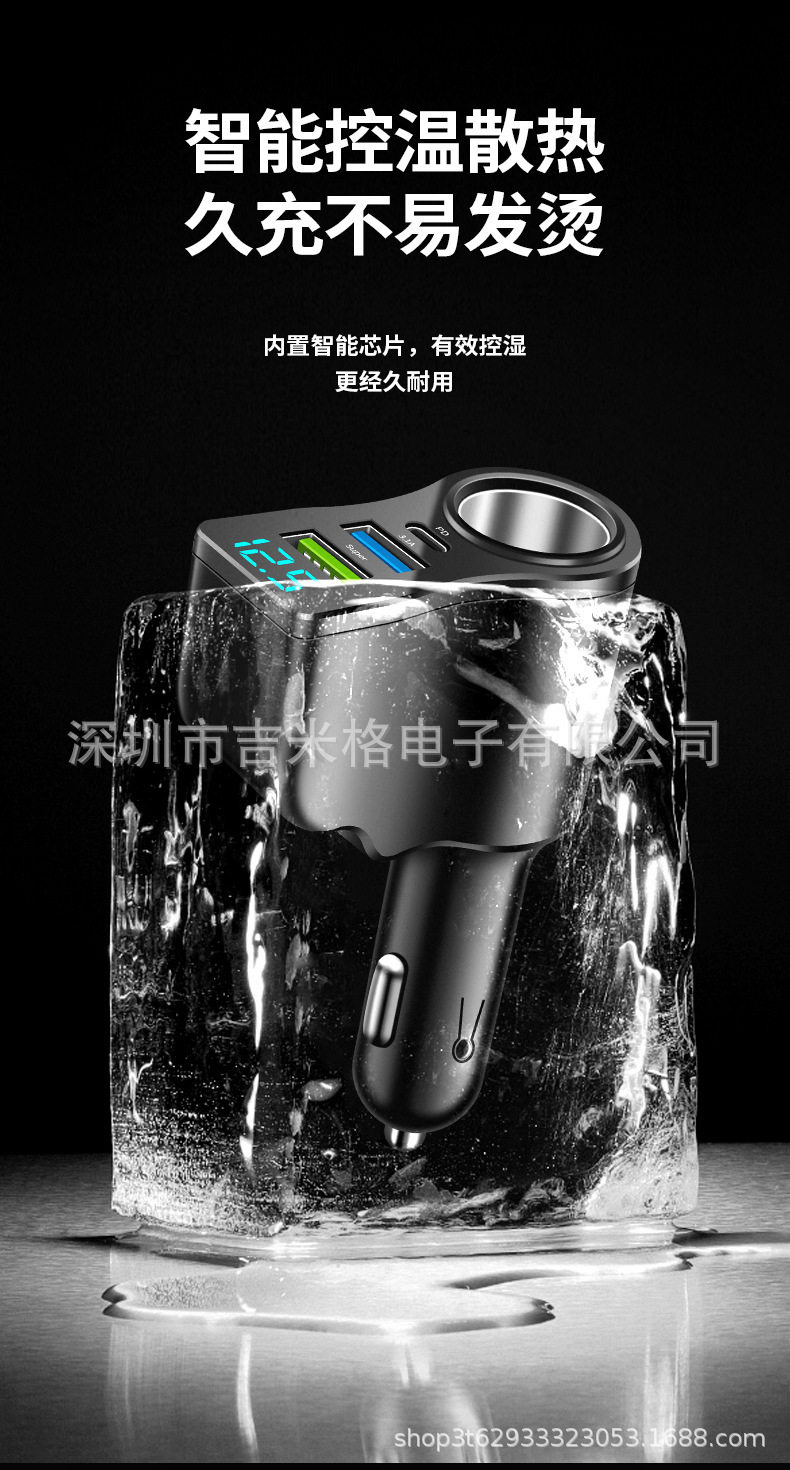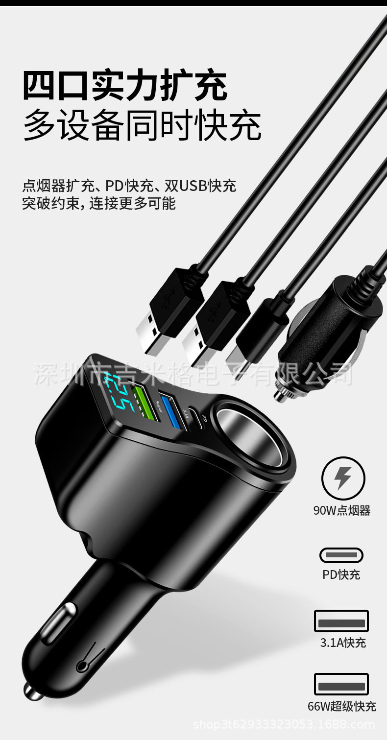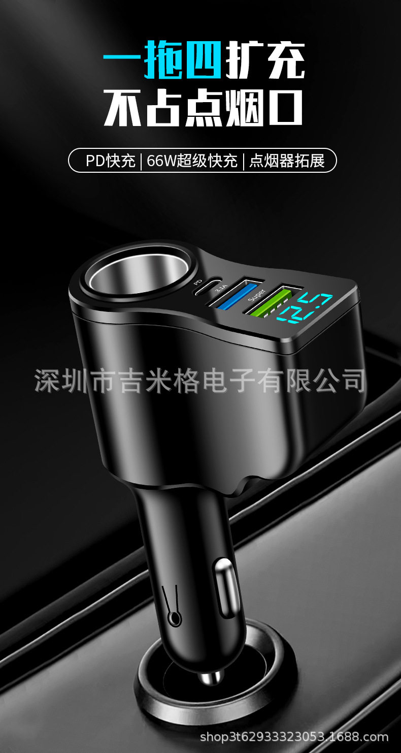 New digital display 66W car charger one drag two cigarette lighter conversion multi-function dual usb mobile phone charger
