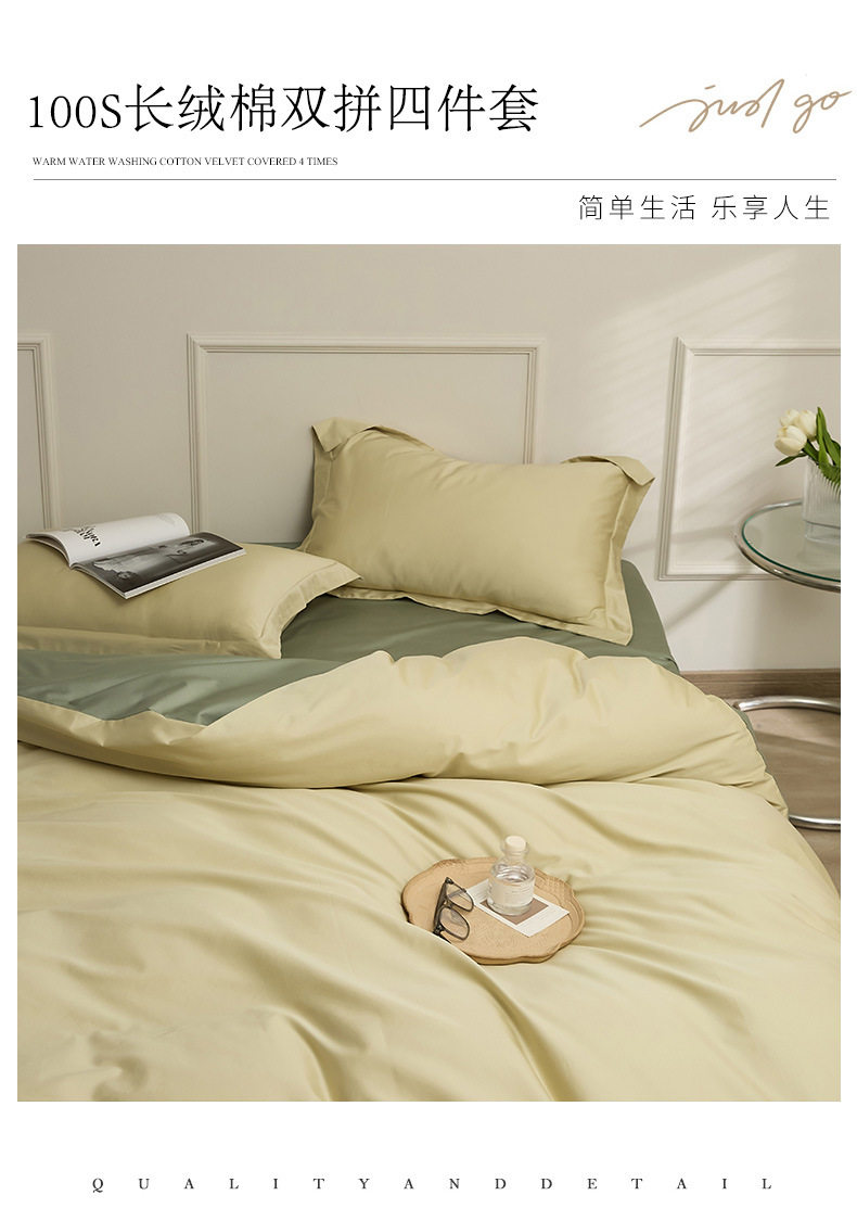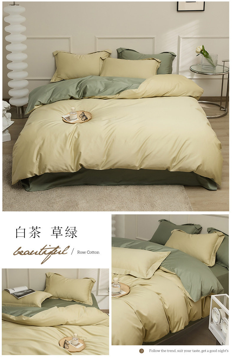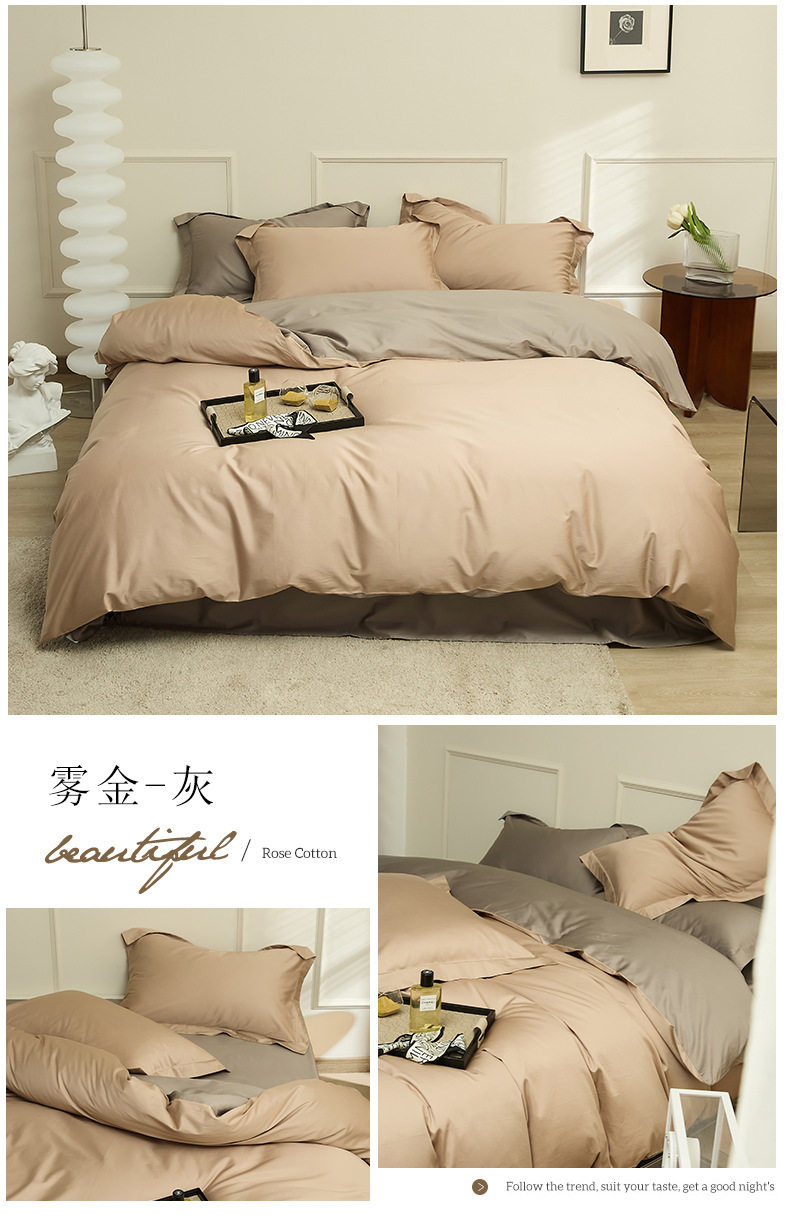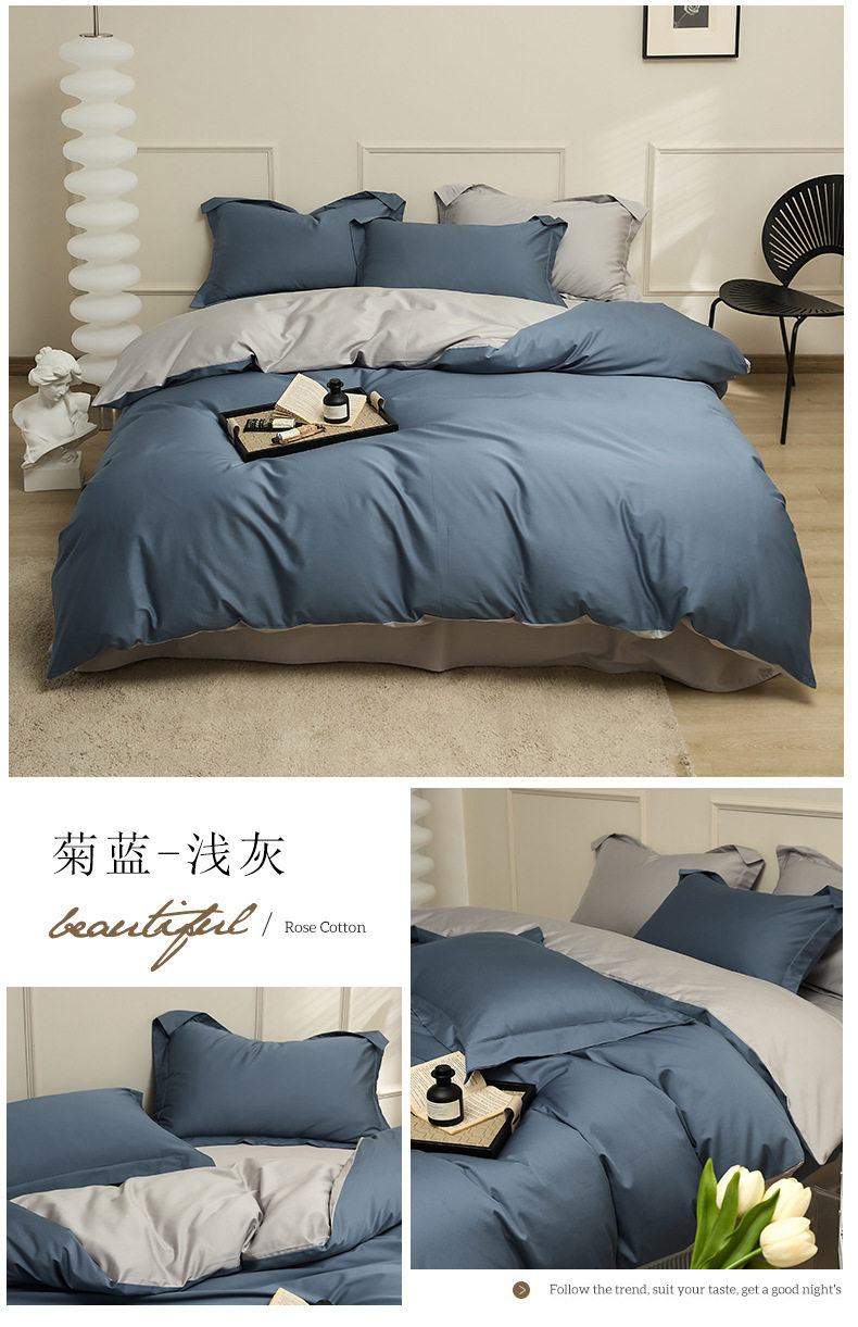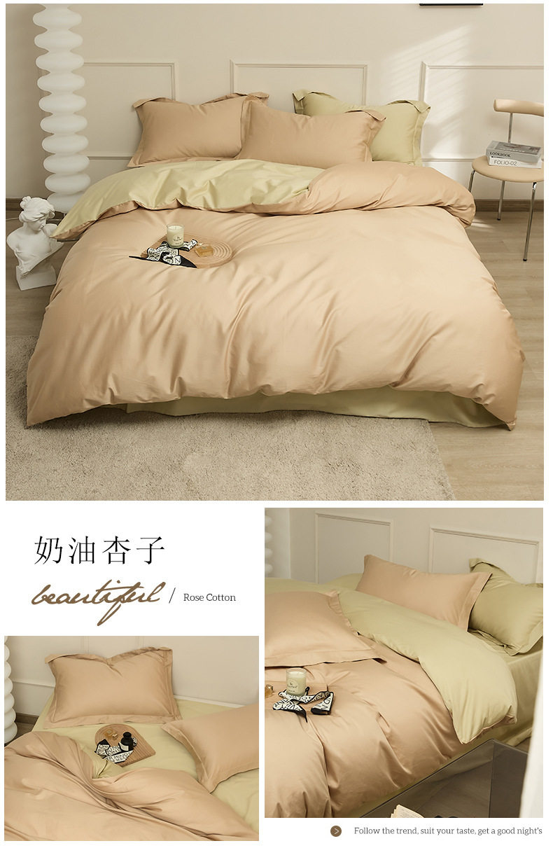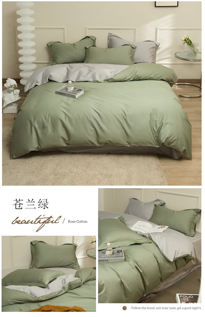 100 Long-staple Cotton Four-piece Bedding Household Solid Color Simple Bed Sheet Quilt Cover Dormitory Bed Three-piece Set