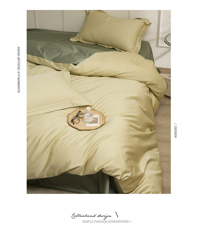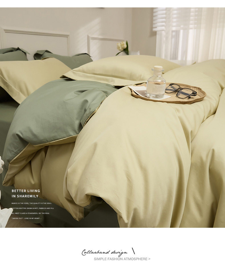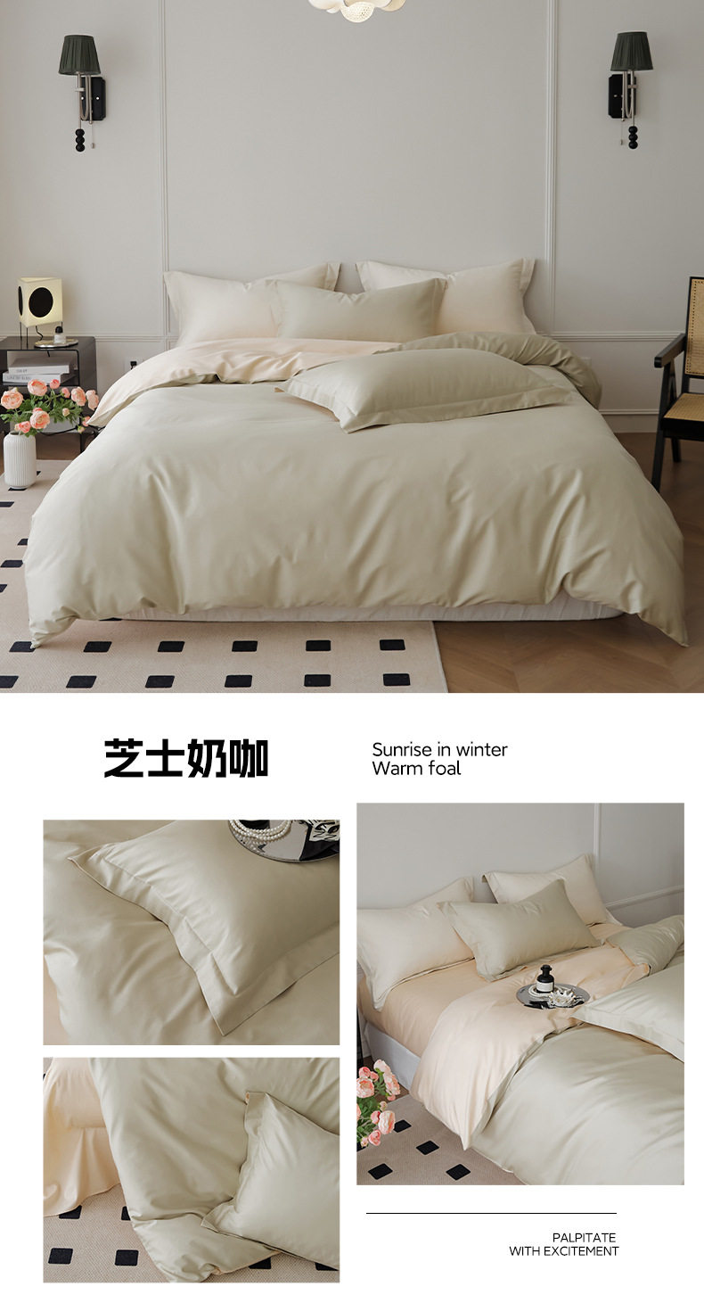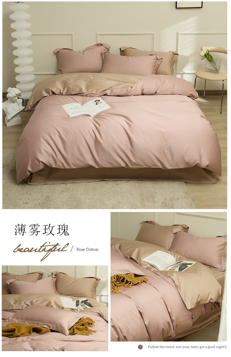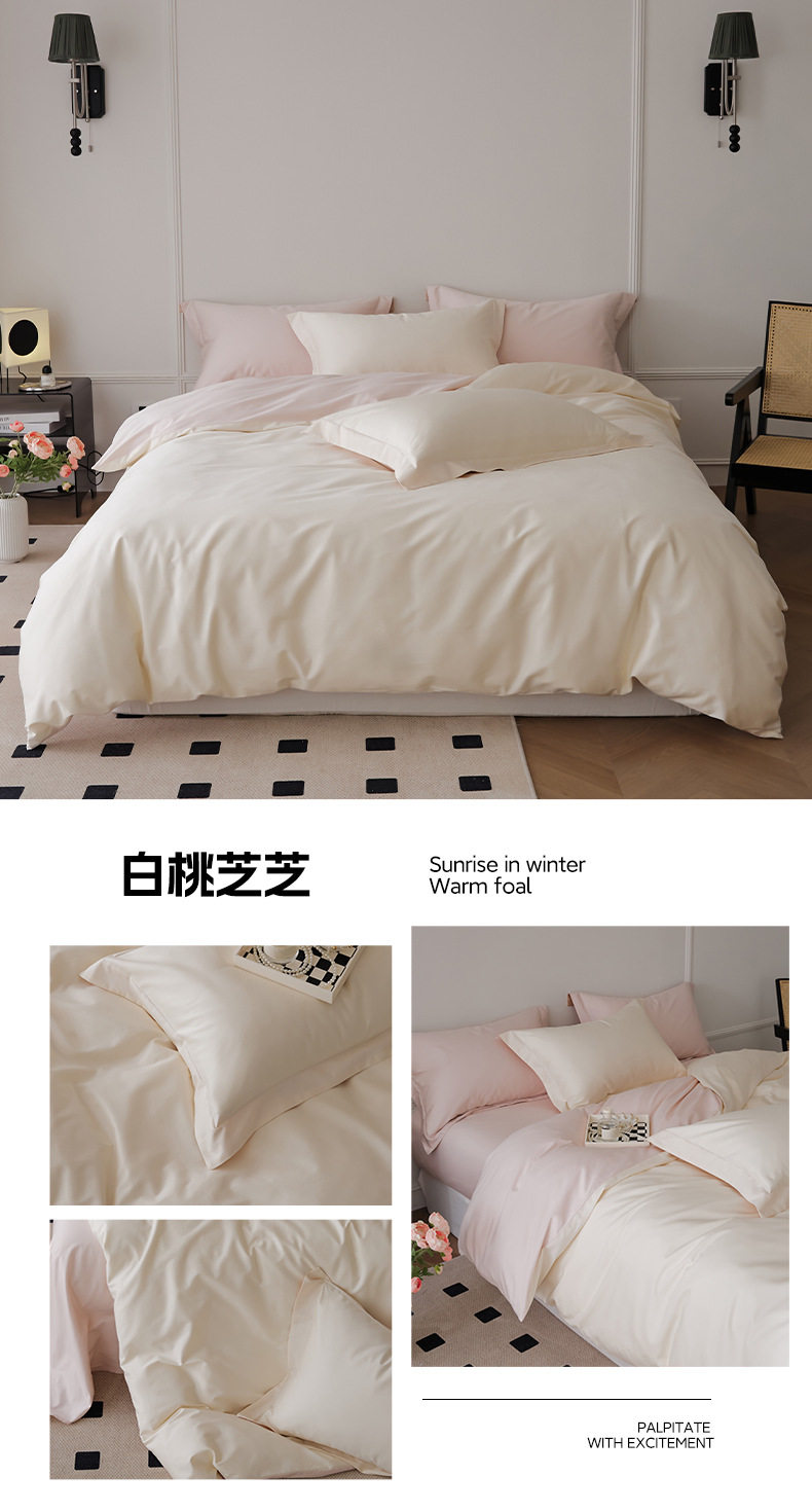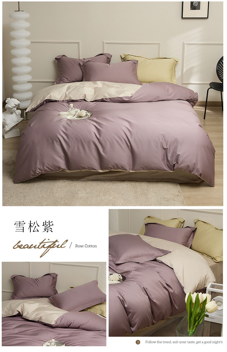 100 Long-staple Cotton Four-piece Bedding Household Solid Color Simple Bed Sheet Quilt Cover Dormitory Bed Three-piece Set