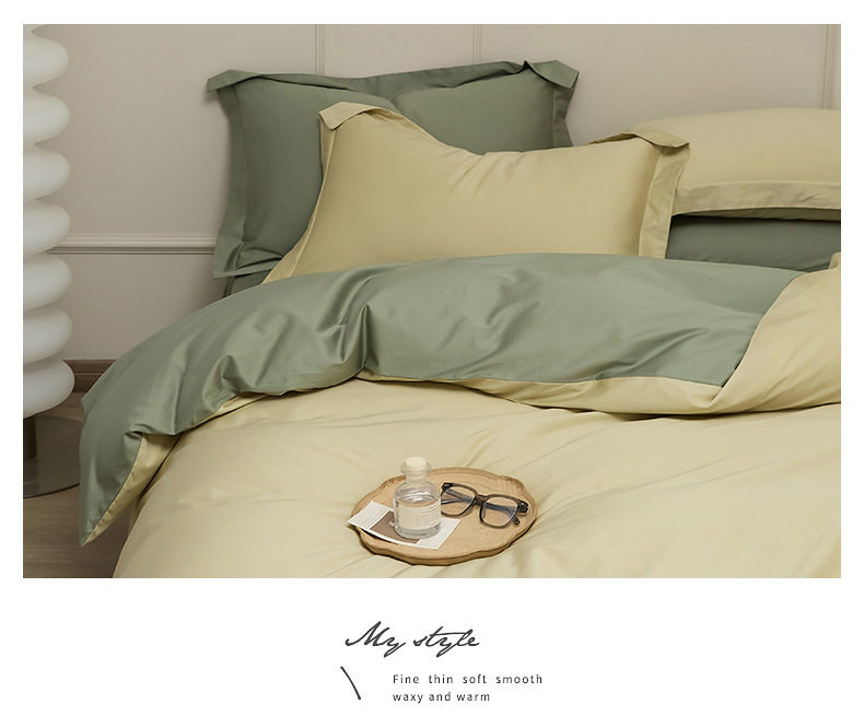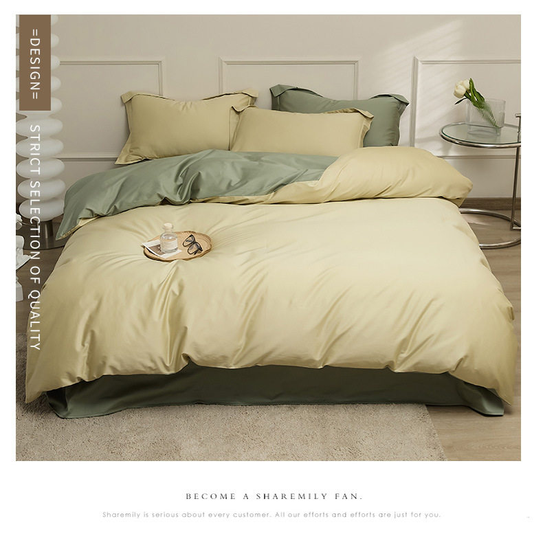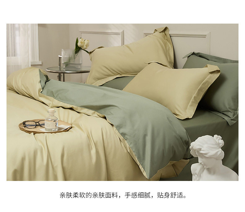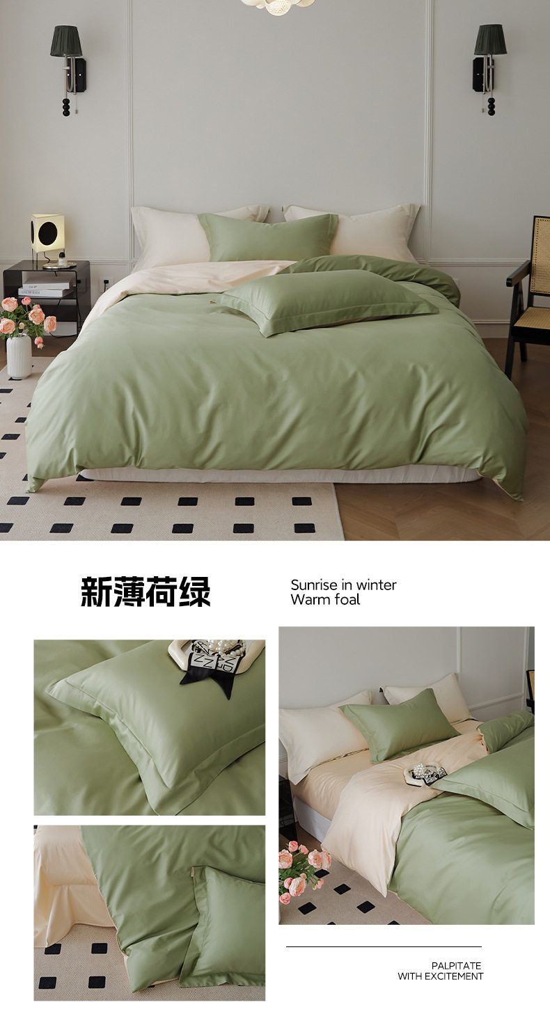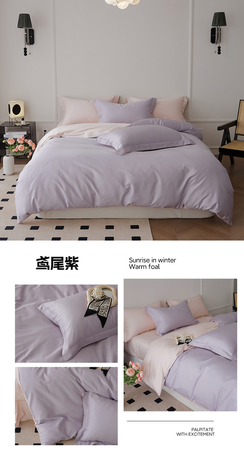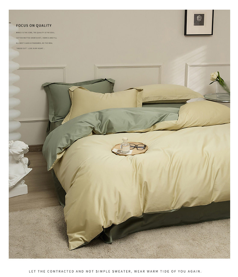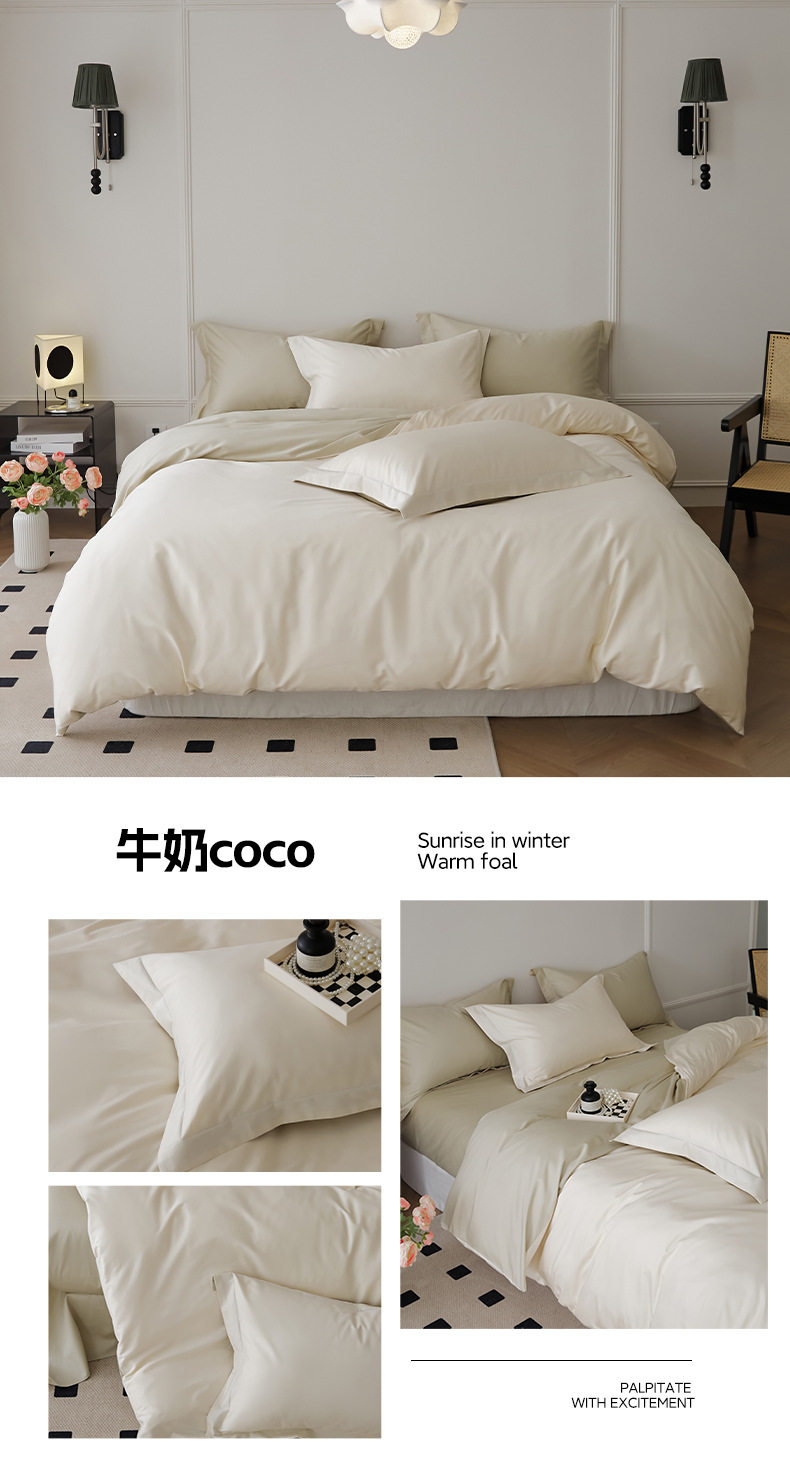100 Long-staple Cotton Four-piece Bedding Household Solid Color Simple Bed Sheet Quilt Cover Dormitory Bed Three-piece Set