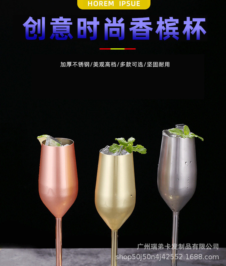 Cross-border Hot Selling Creative 304 Stainless Steel Champagne Cup Cocktail Cup Metal Cup Goblet Bar KTV Red Wine Glass