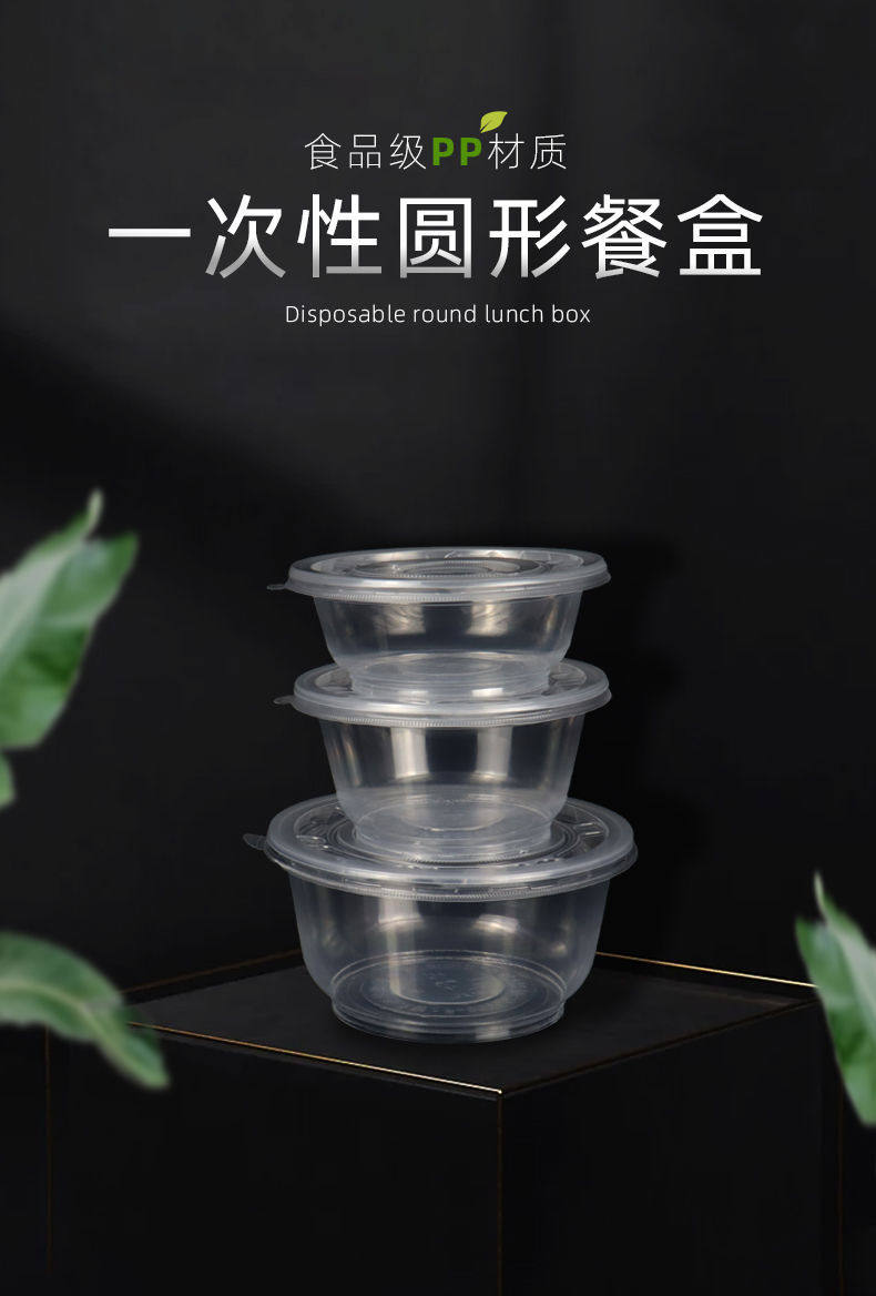 [600 only] Disposable Bowl Round Bowl with Lid Thickened Plastic Bowl for Commercial Restaurants...