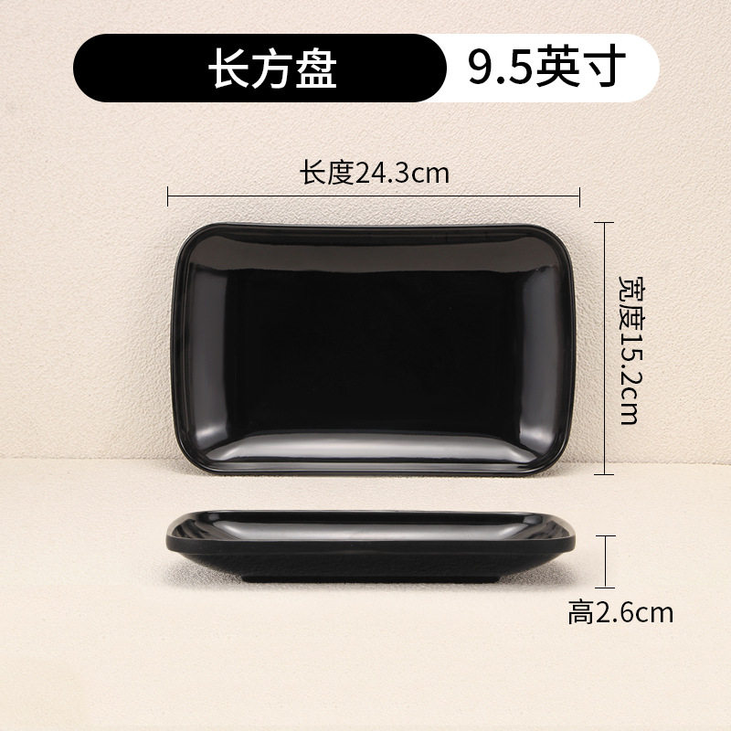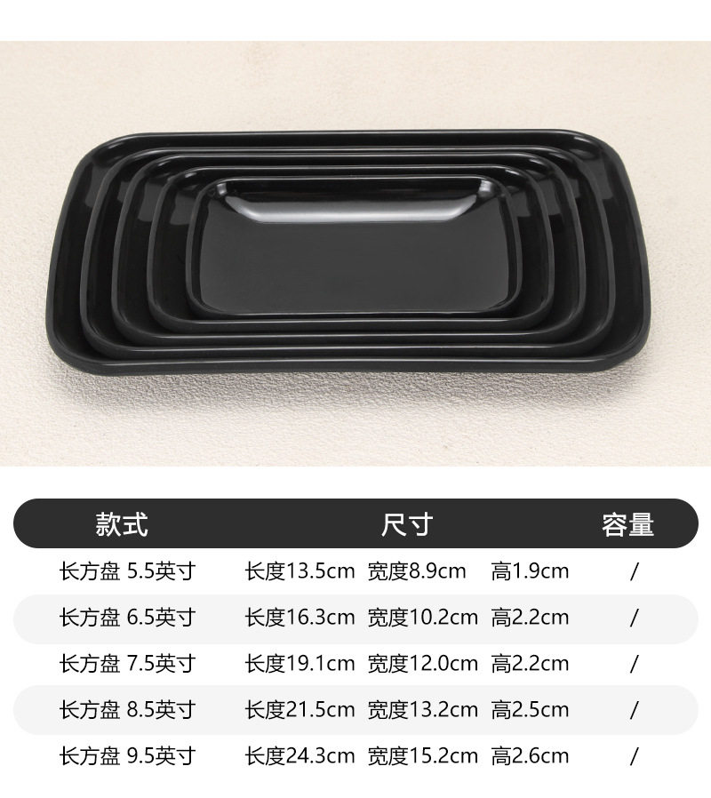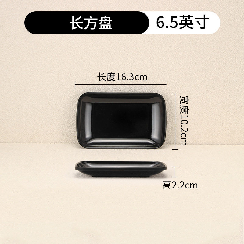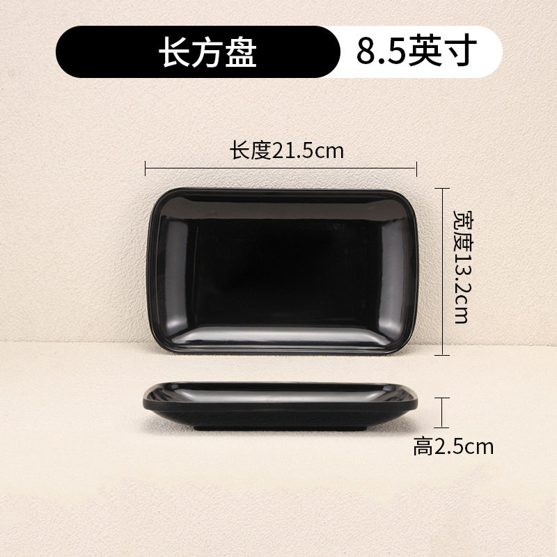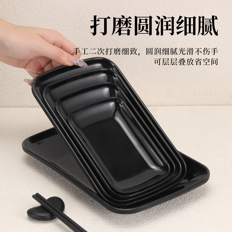 Black Barbecue Plate Commercial Melamine Rectangular Plate Snack Plate Plastic Plate Imitation Porcelain Tableware Rice Roll Special Powder Plate