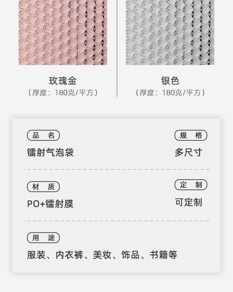 | Color | Aluminized film-rose gold,Laser film-rose red,Laser film-silver |