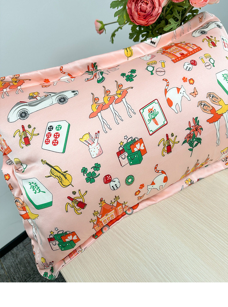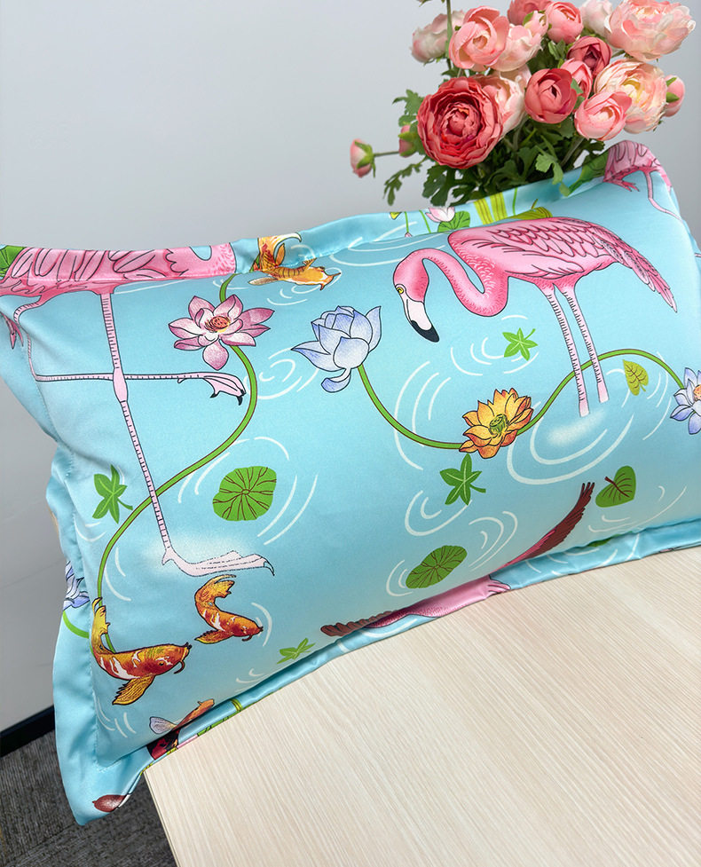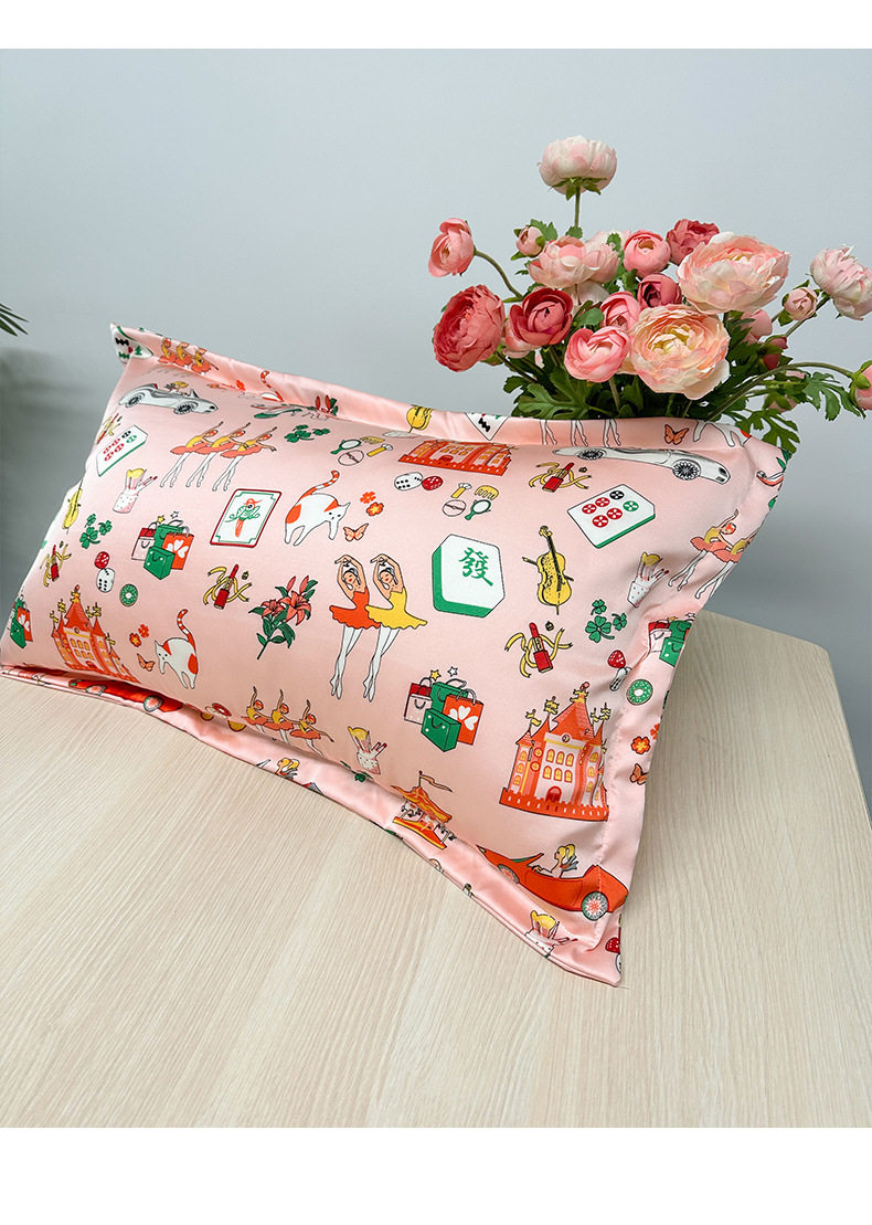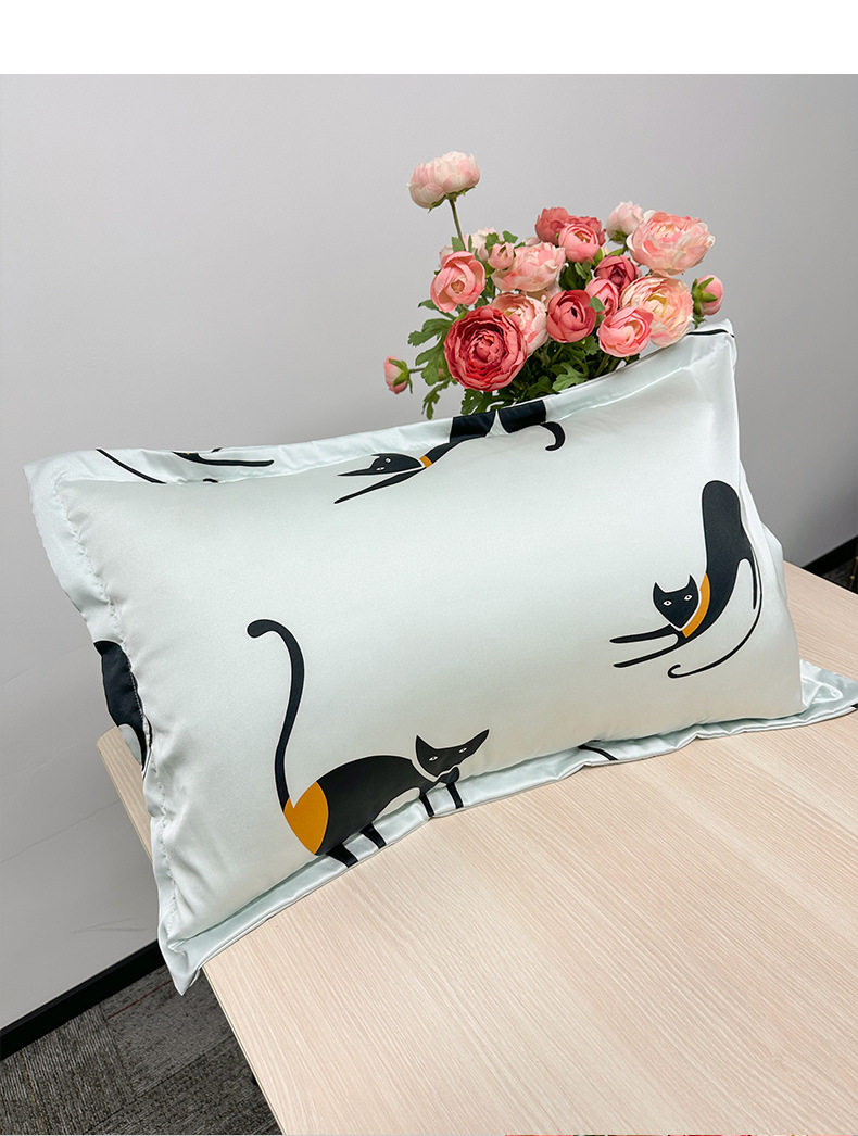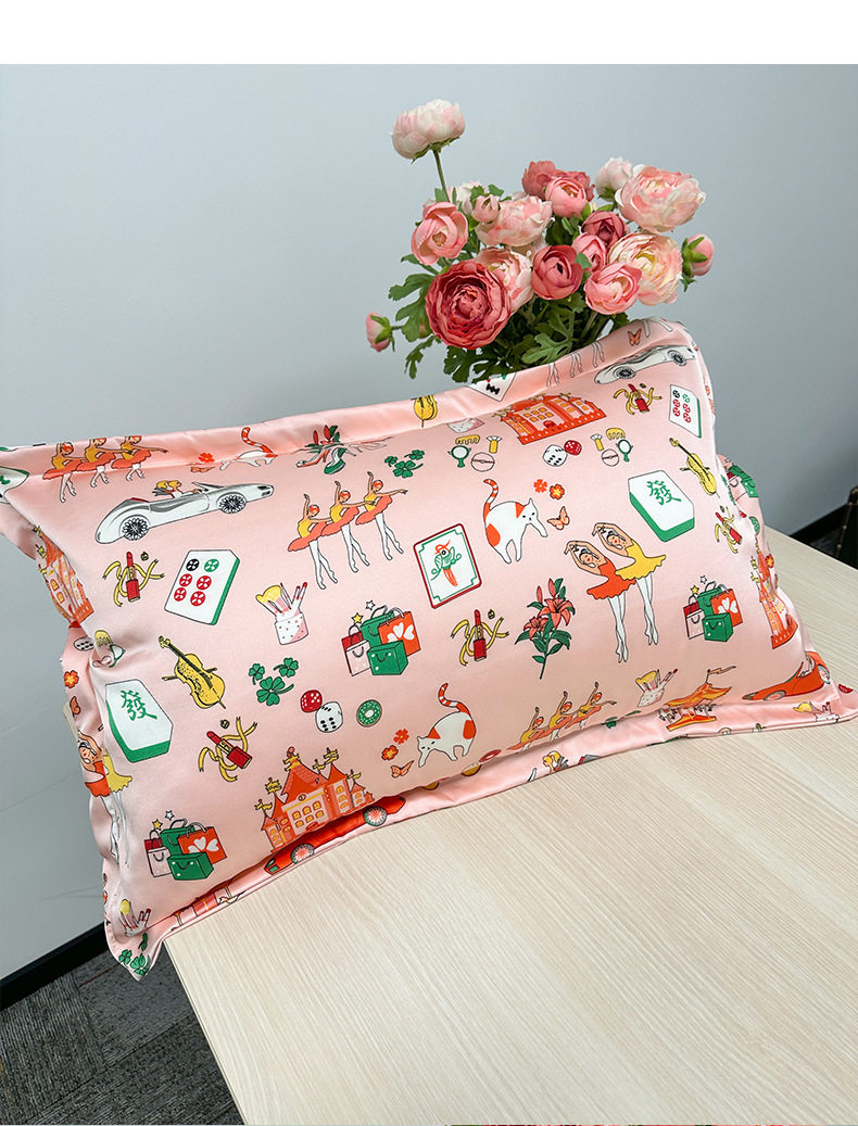 Cross-Border Imitation Silk Pillowcase Printed Cushion Ice Silk Pillowcase Single Imitation Silk Pillowcase Silk Pillowcase