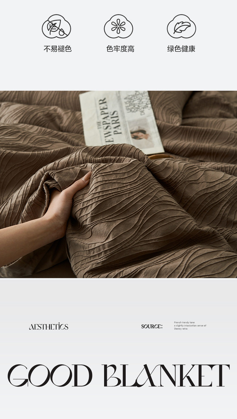 | Flower type | Wave pattern-medium gray,Wave pattern - camel,Wave pattern-dark gray,Wave pattern-caramel,Wave pattern-milkshake white,Texture pattern four-piece set-dark gray,Texture pattern four-piece set-milkshake white,Texture pattern four-piece set-light gray,Texture pattern four-piece set - light camel,Texture pattern four-piece set-medium gray,Texture pattern four-piece set-brown,Wool pattern four-piece set-dark gray,Wool pattern four-piece set-original white,Wool pattern four-piece set-caramel,Wool pattern four-piece set-light gray,Wool pattern four-piece set-camel,Wool pattern four-piece set-brown,Three-layer gauze bark pattern four-piece set-dark gray,Three-layer gauze bark pattern four-piece set-original white,Three-layer gauze bark pattern four-piece set-caramel coffee,Three-layer gauze bark pattern four-piece set-light gray,Three-layer gauze bark pattern four-piece set - light camel,Three-layer gauze bark pattern four-piece set-medium gray |