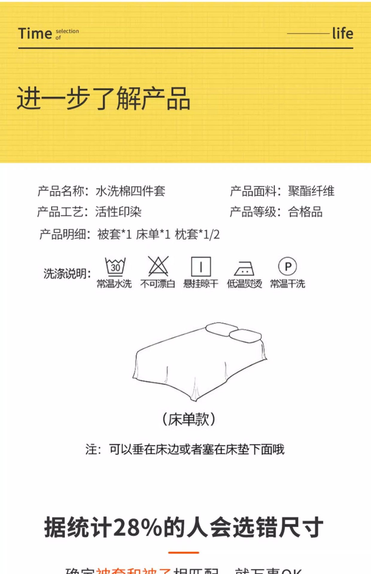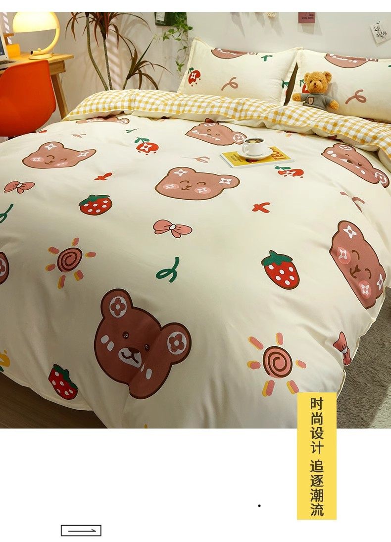 | Dimensions | 1.2m bed [three-piece bed sheet set] suitable for 150x200cm quilt core,1.5m bed [sheet set of four] suitable for 150x200cm quilt core,1.8m bed [sheet set of four] suitable for 180x220cm quilt core,2.0m bed [sheet set of four] suitable for 200x230cm quilt core |