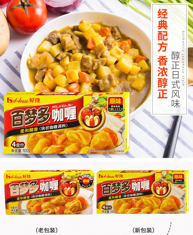 | Packaging specifications | [original flavor] baimondo curry 100g*1,[original flavor] baimondo curry 100g*2,[original flavor] baimondo curry 100g*3,[mildly spicy] baimondo curry 100g*1,[mildly spicy] baimondo curry 100g*2,[mildly spicy] baimengduo curry 100g*3,[spicy] baimondo curry 100g*1,[spicy] baimondo curry 100g*2,[spicy] baimondo curry 100g*3 |