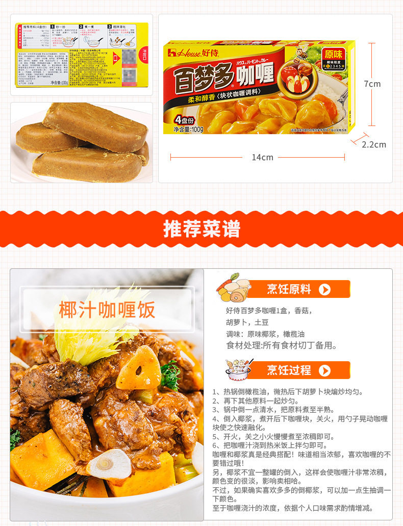 Haoshi Baimengduo Curry Original Flavor 100g Japanese Instant Curry Cubes Chicken and Beef Seasoning Home Original Bibimbap