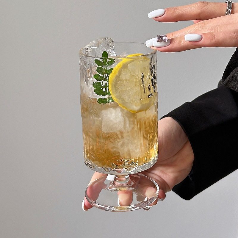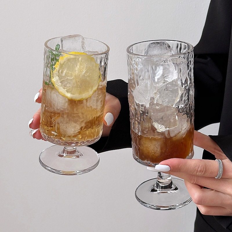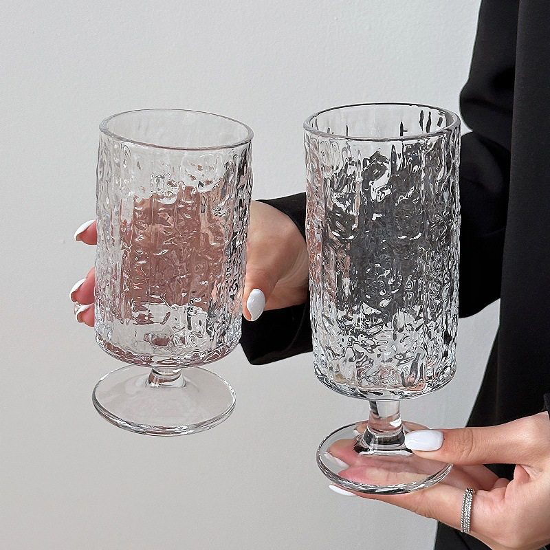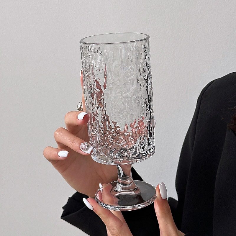 Simple Fresh Glass Water Cup Mori Bark Pattern Goblet Coffee Cup Household Juice Cup Cocktail Cup