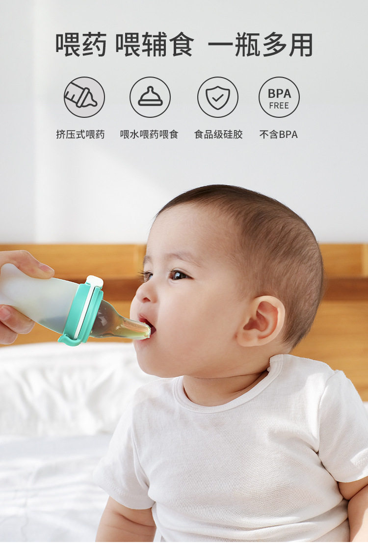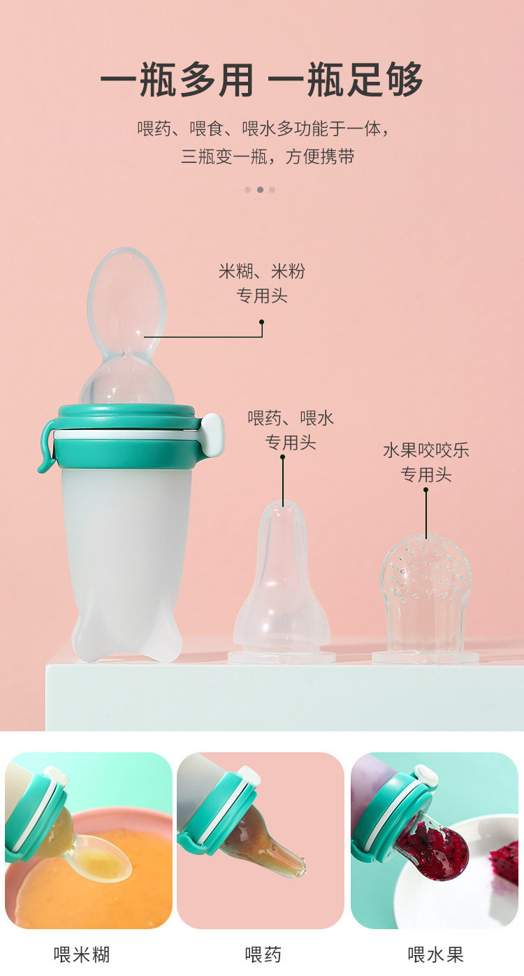 Multifunctional Baby Teething Toy Three-In-One Fruit and Vegetable Teething Bag, Complementary Food Feeding Spoon, Silicone Rice Cereal Bottle, Pacifier