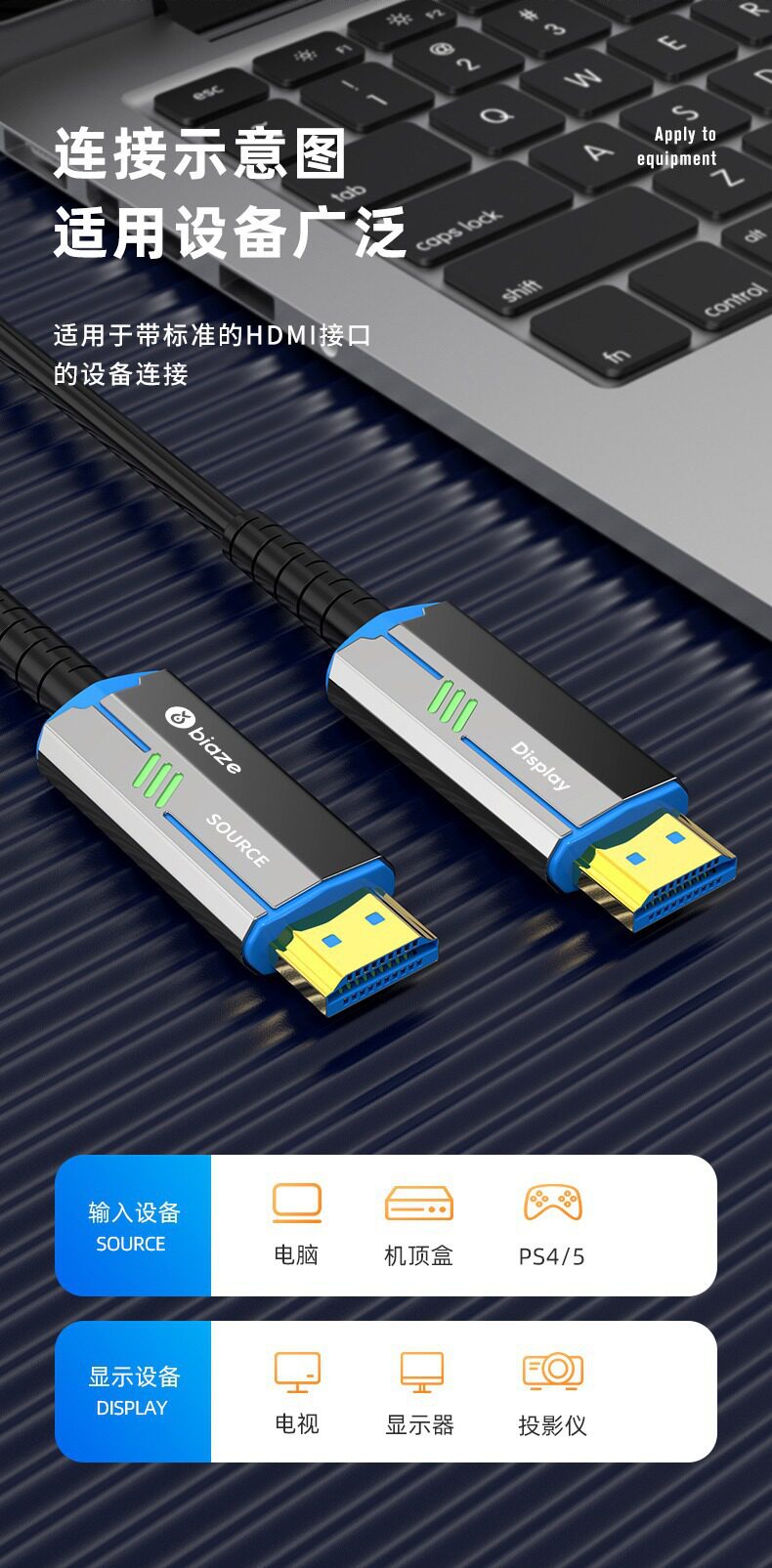 Biaz HDMI Fiber Optic Cable 8K Extended High-Definition Cable 4K60Hz Computer Monitor Connection Steel Armor Cable Project