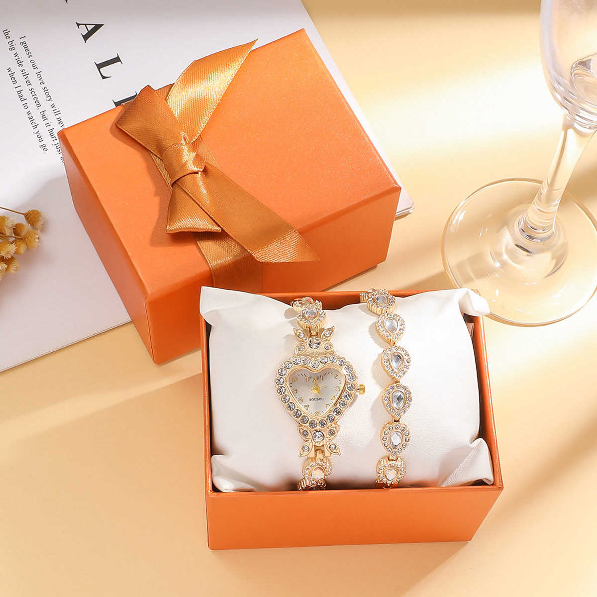 2 pcs/set Spring and Summer Ladies New Love Aurora Dial Diamond Watch Bracelet Gift suit Birthday Gift