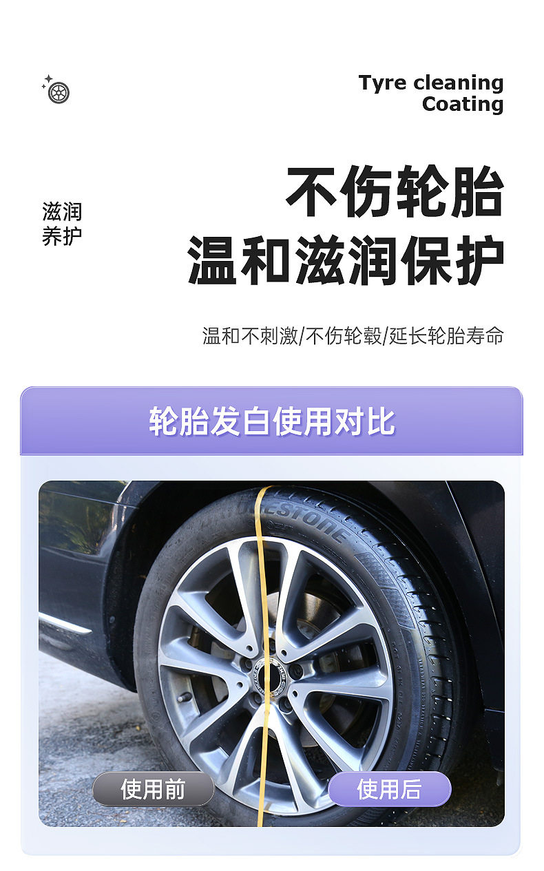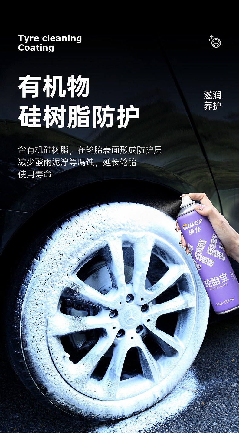 Car Tire Wax Stain Remover Polish Black Glossy Glaze Brightener Motorcycle Protective Foam