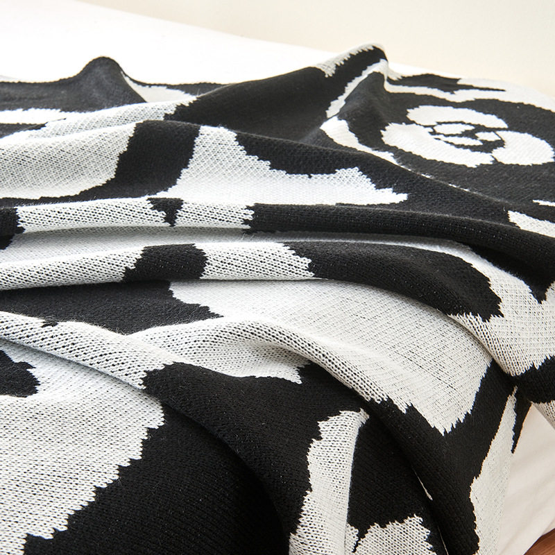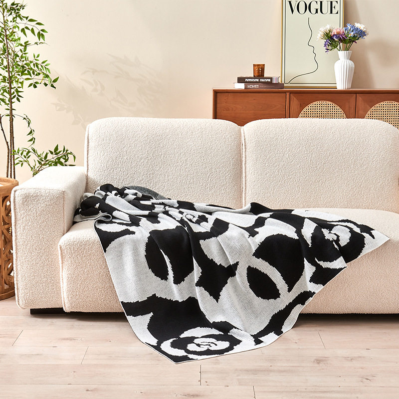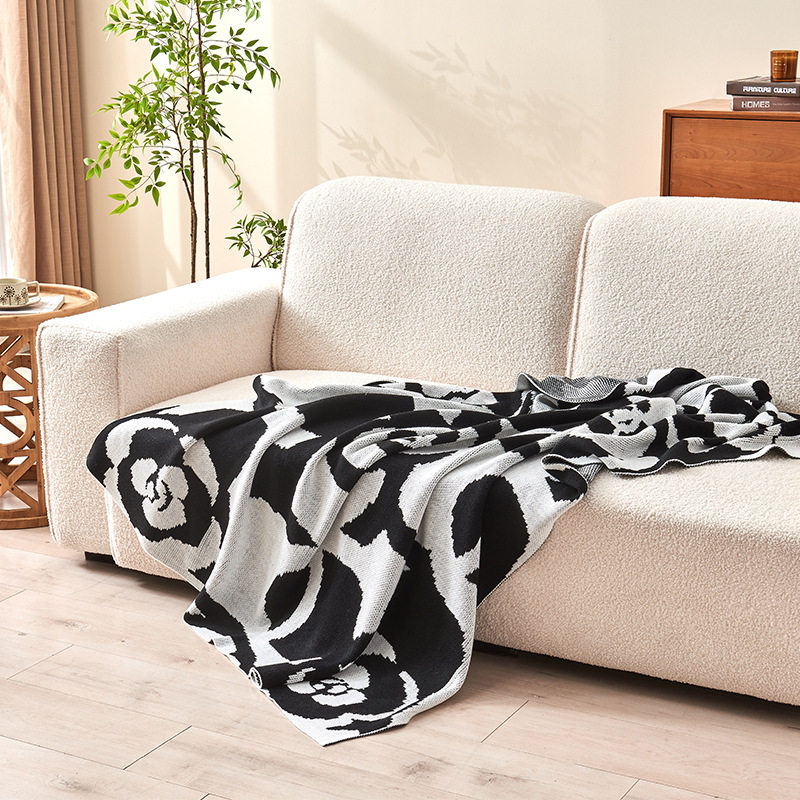 Light Luxury and Simple Camellia Knitted Blanket, Soft and Skin-Friendly Spring and Summer Office Nap Air-Conditioned Blanket Gift Blanket