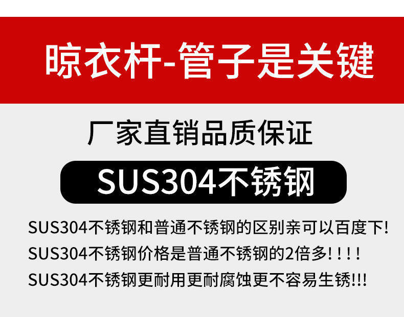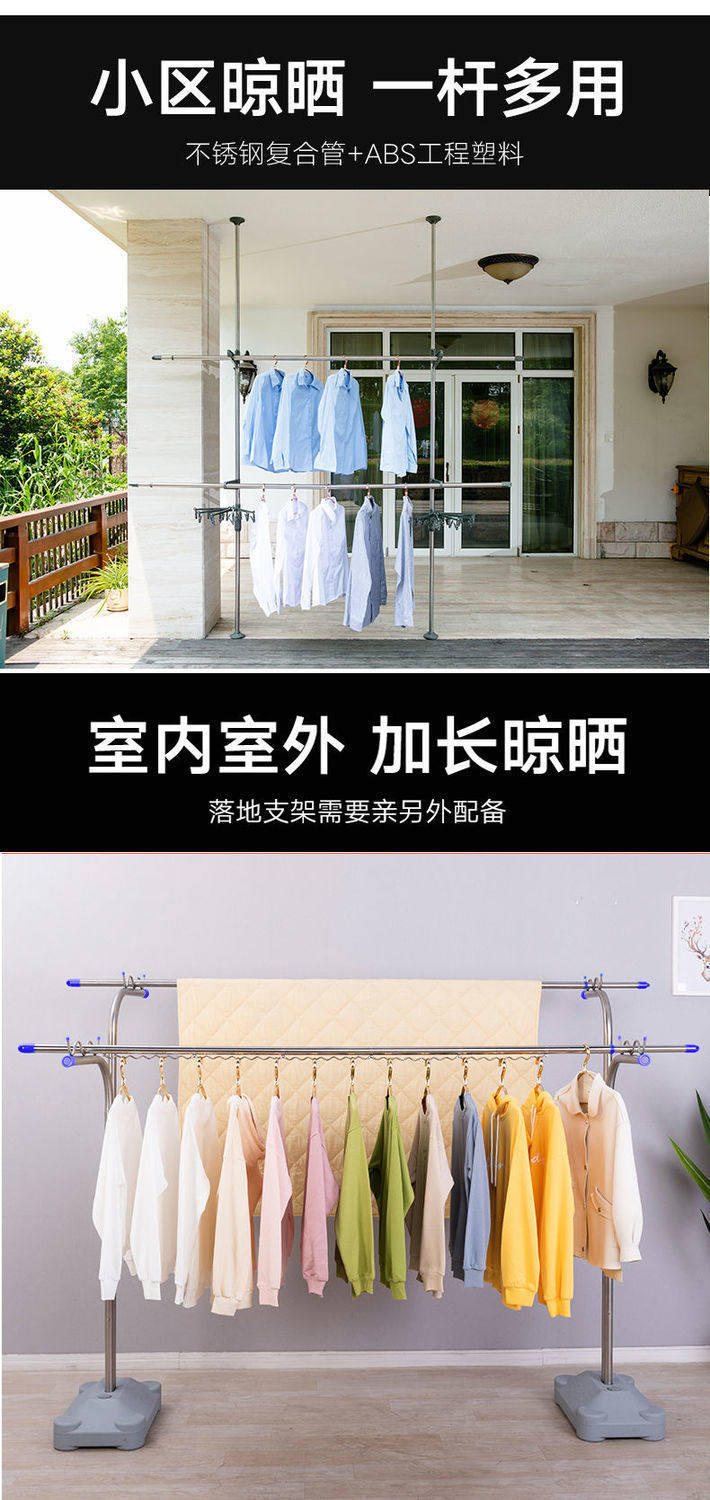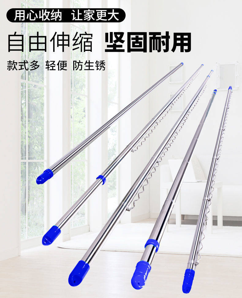 Wholesale Pure Stainless Steel Thickened Telescopic Clothes Drying Rod Balcony Outdoor Clothes Drying Rod Without Drilling