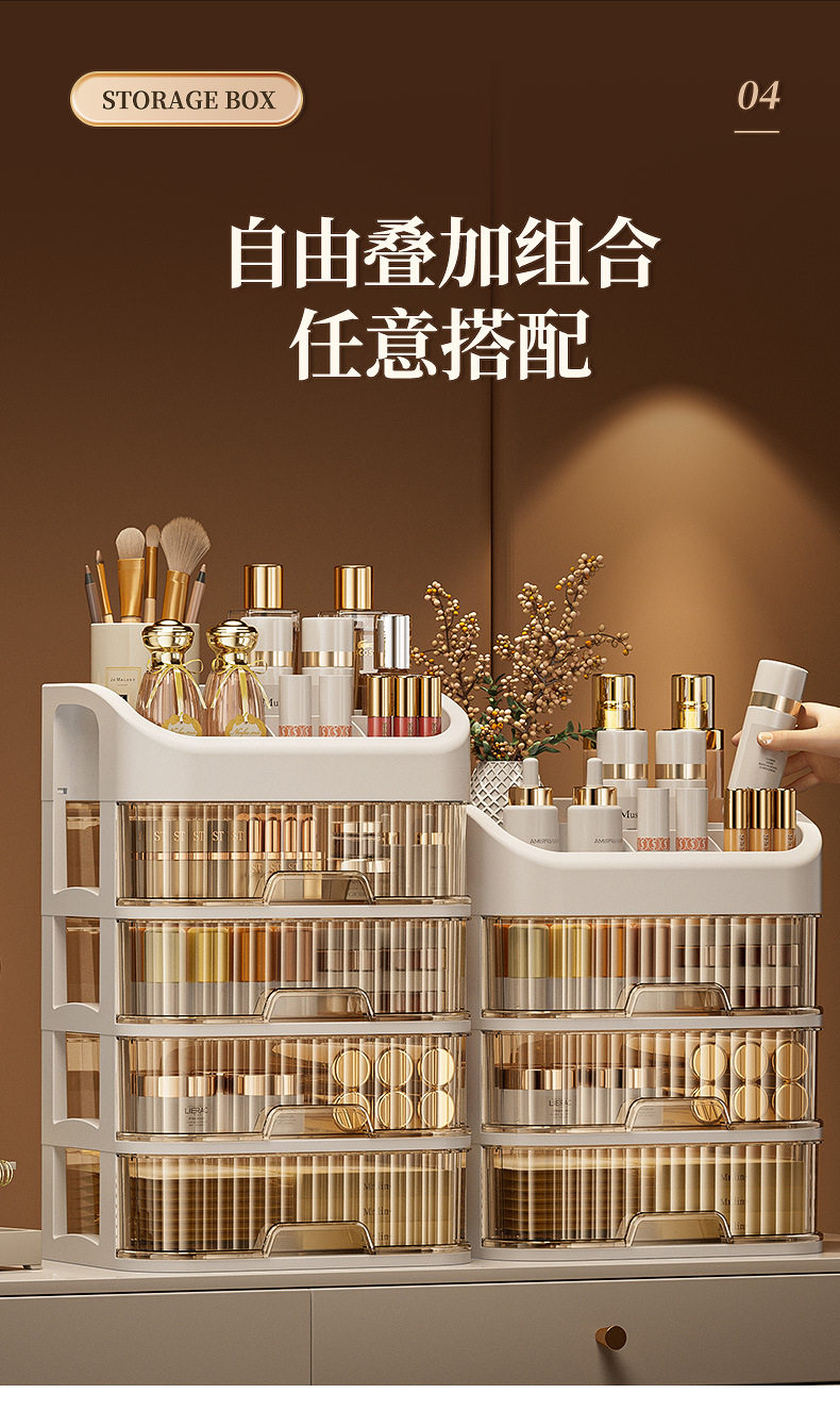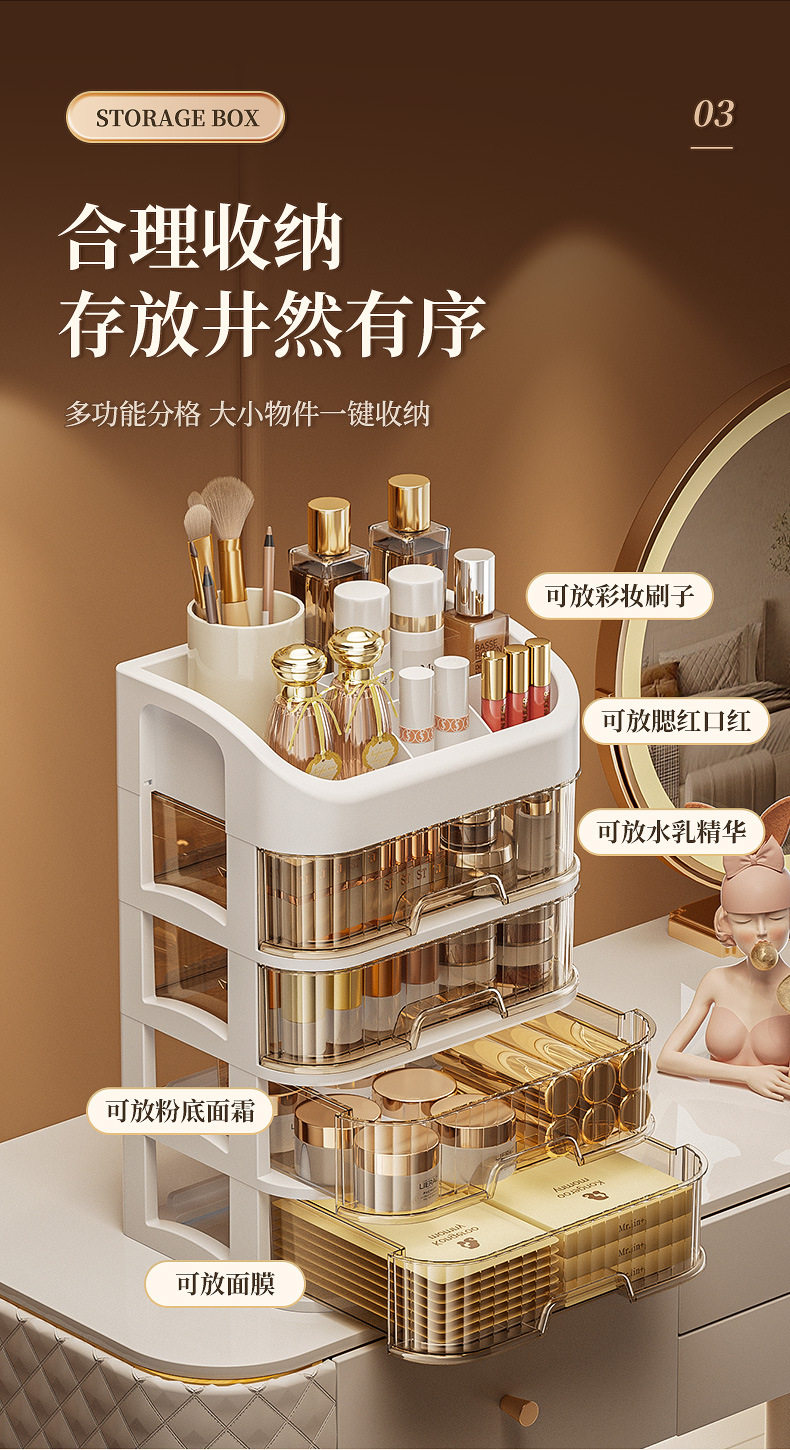 Desktop Storage Box, Drawer-Type Makeup Table, Cosmetics Storage Rack, Compartmentalized Storage Box, High-End and Luxurious