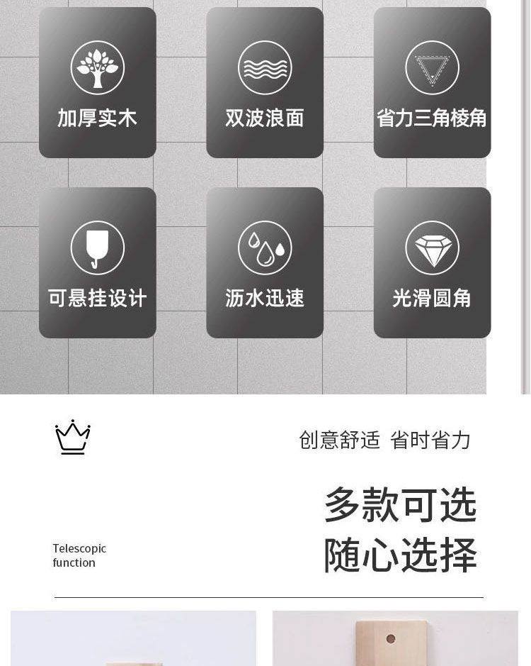 Solid Wood Washboard, Solid Wood Laundry Washboard, Whole Board, Thickened, Large and Small, Household Washboard, Non-Mouldy Clothes