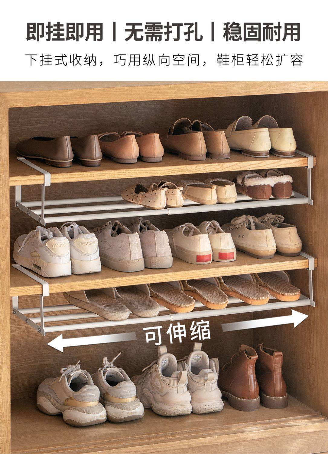 Layered Shoe Rack for Home Use, Extendable Shoe Cabinet with Dividers, Shoe Holder with Hanging Basket, Storage Rack for Organizing Shoes