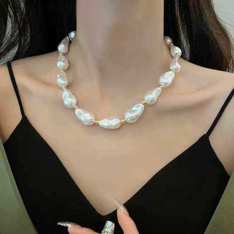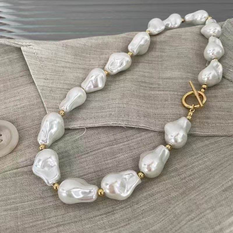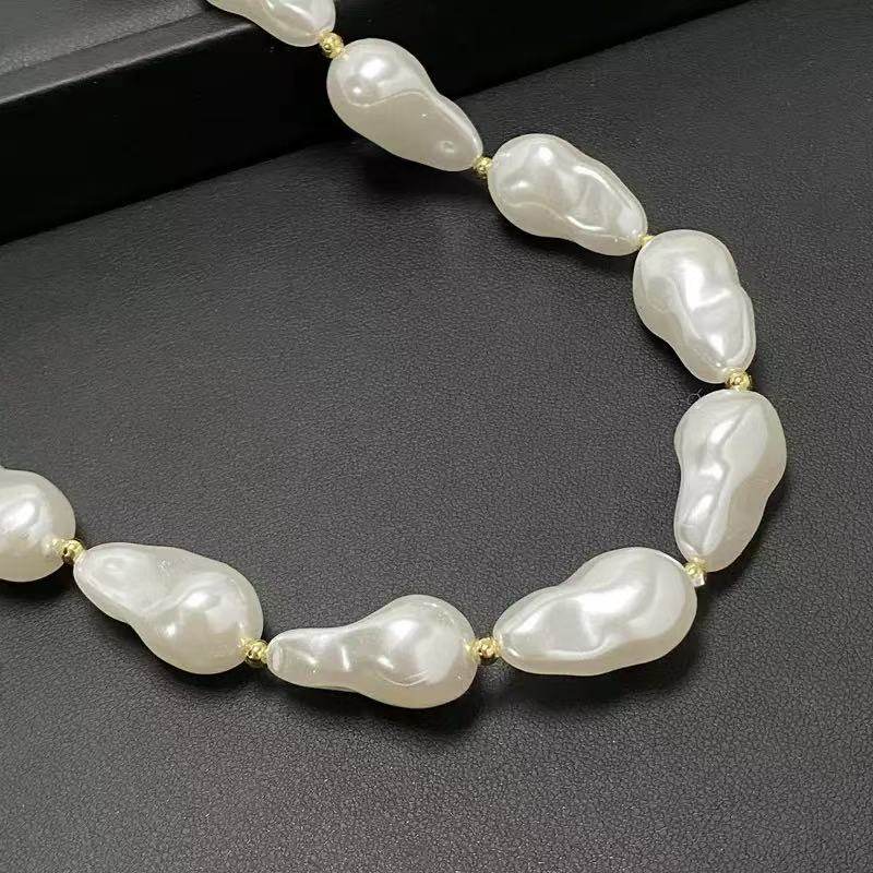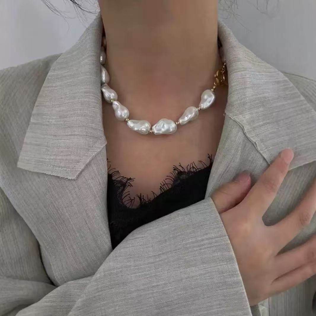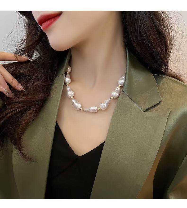 European and American Elegant Baroque Special-Shaped Pearl Necklace Women's Personalized Light Luxury High-Level Clavicle Chain Necklace Chain Woolen Chain